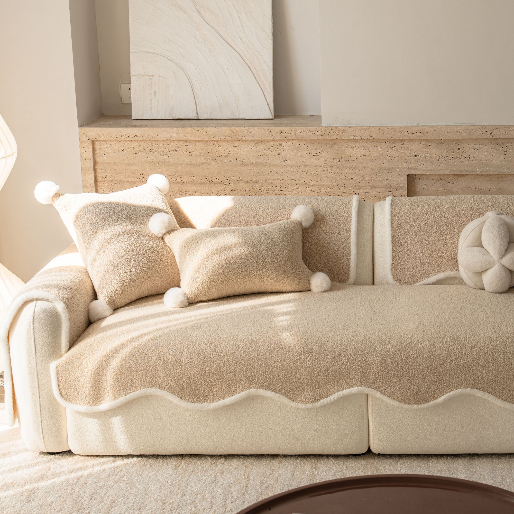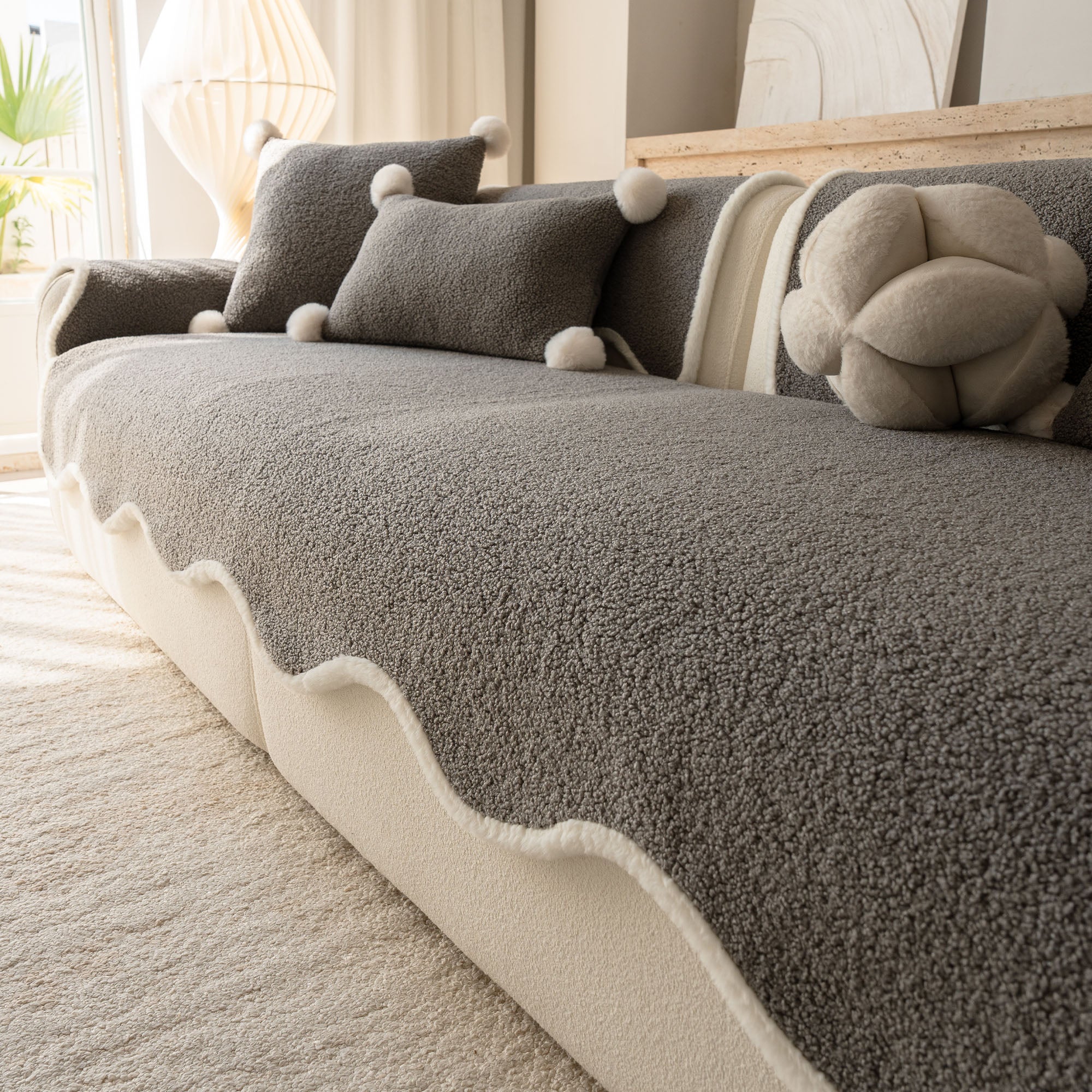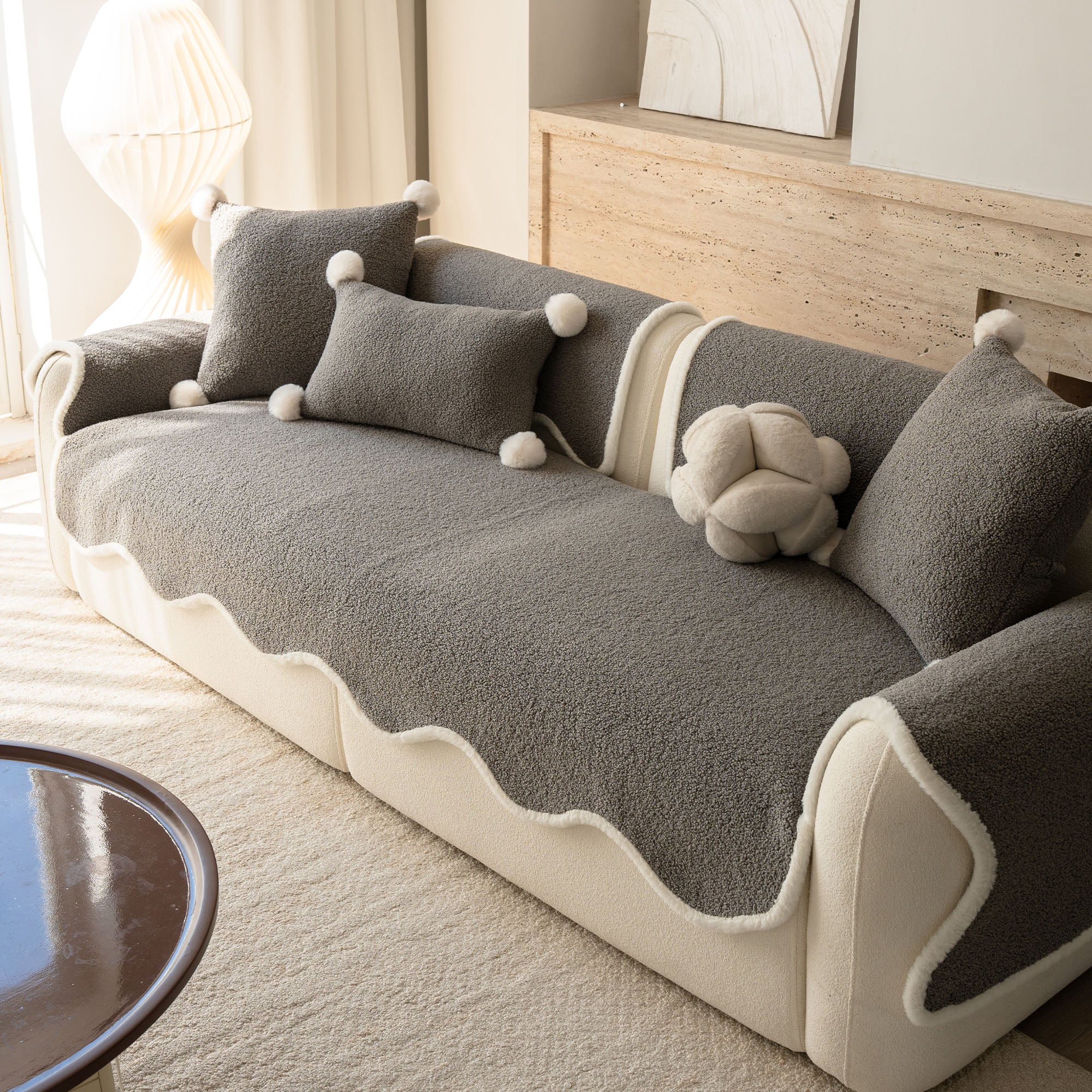 Wrap your sofa in quiet luxury with our Cozy Shearling Sherpa Nonslip Sofa/Couch Cover. The plush, high-density sherpa pile feels cloud-soft yet wears beautifully through fall and winter. A stay-put nonslip backing helps the cover hug your seat cushions and armrests, while the softly scalloped edge adds a refined, designer finish. Pet- and family-friendly, it shields your sofa from hair, scratches, crumbs, and everyday spills—so your living room always looks guest-ready.