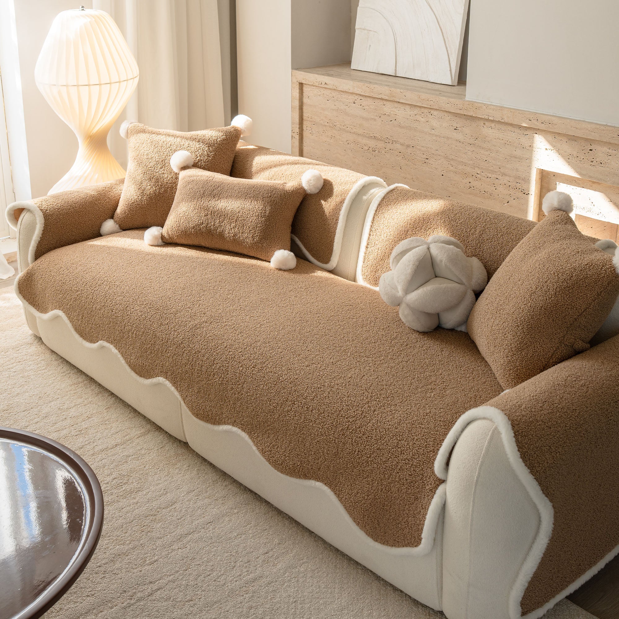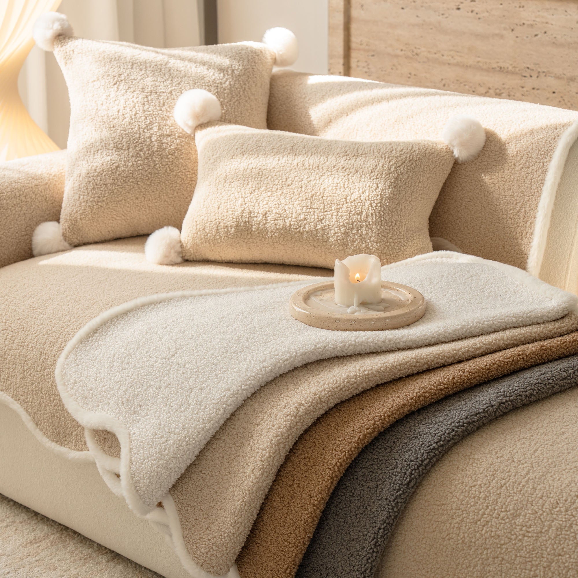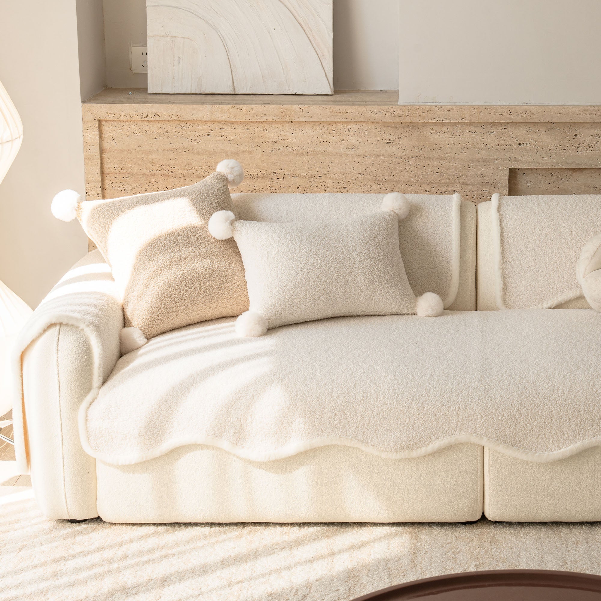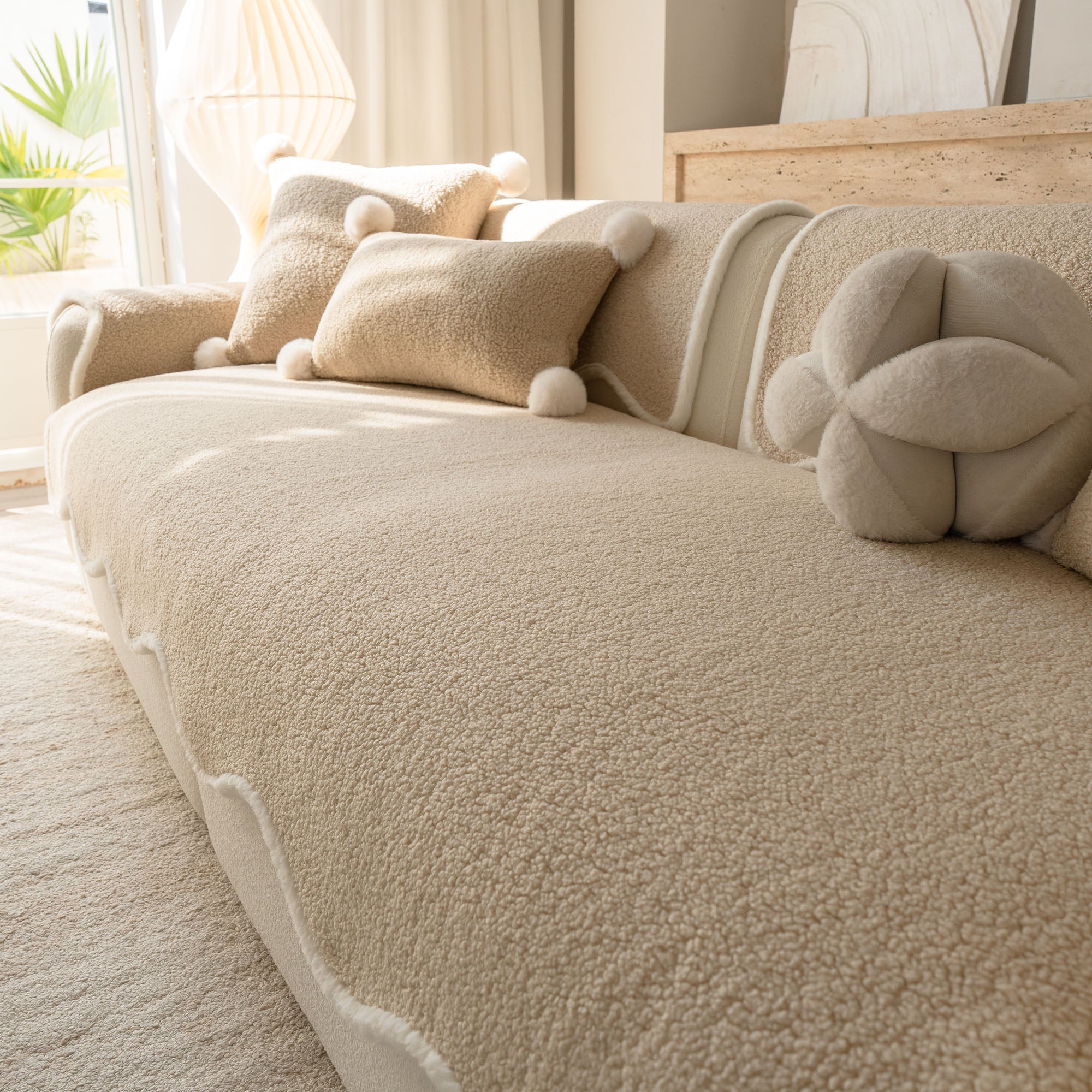 Wrap your sofa in quiet luxury with our Cozy Shearling Sherpa Nonslip Sofa/Couch Cover. The plush, high-density sherpa pile feels cloud-soft yet wears beautifully through fall and winter. A stay-put nonslip backing helps the cover hug your seat cushions and armrests, while the softly scalloped edge adds a refined, designer finish. Pet- and family-friendly, it shields your sofa from hair, scratches, crumbs, and everyday spills—so your living room always looks guest-ready.