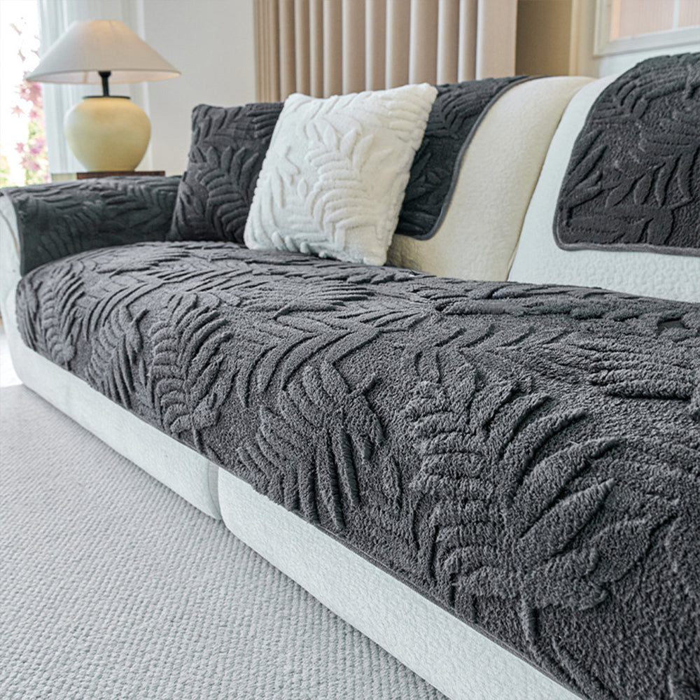 Plush Leaf Chenille Nonslip Sofa Cover