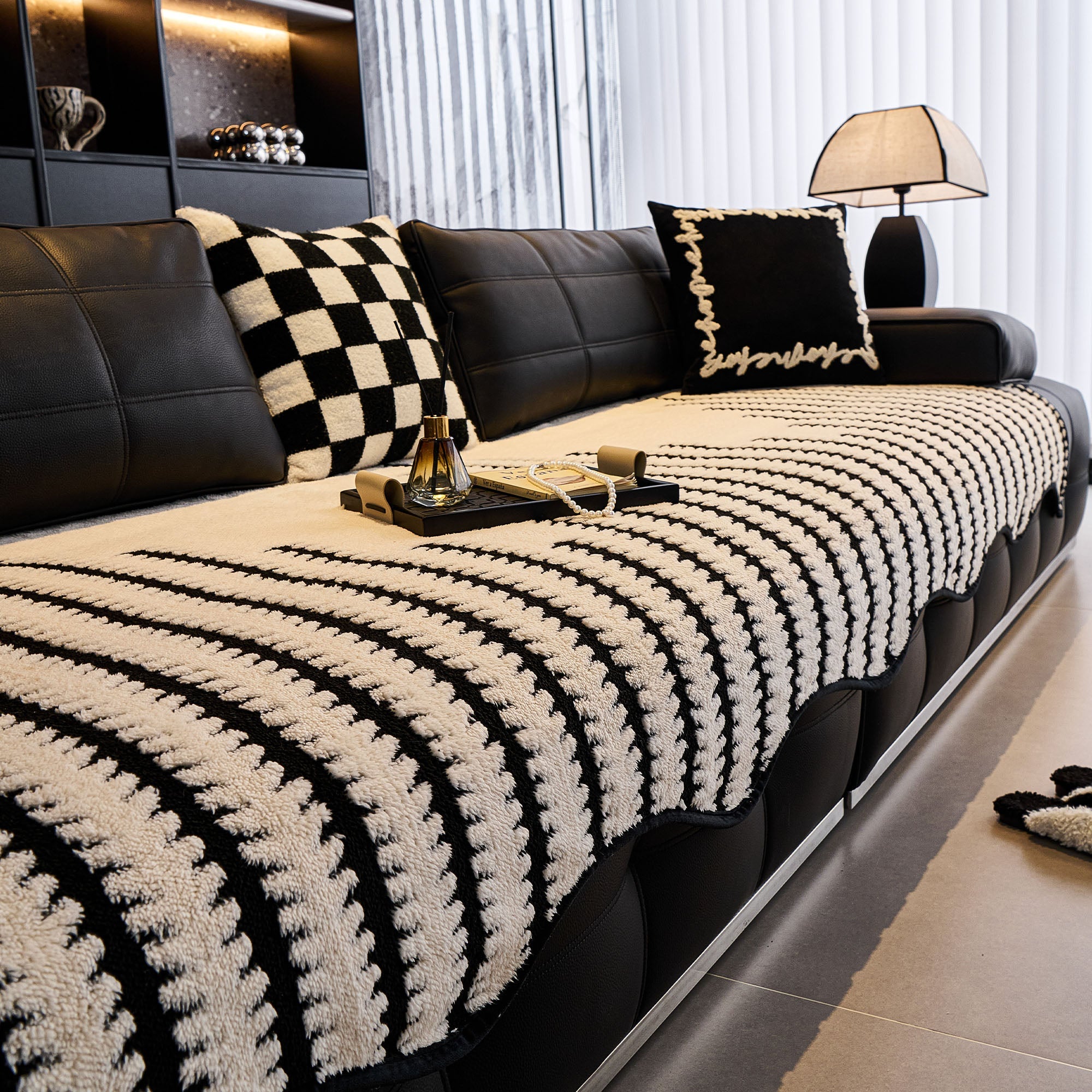 Give your seating a modern, high-end refresh with our Luxe Tuft Stripe Plush Nonslip Sofa/Couch Cover. The thick, winter-ready plush with sculpted stripe tufting delivers cozy warmth and dimensional style, while the upgraded nonslip backing keeps every panel neatly in place on straight or sectional sofas. Crafted for everyday living, it shields against spills, pet hair, and wear—elevating your space with a subtle, light-luxury vibe.