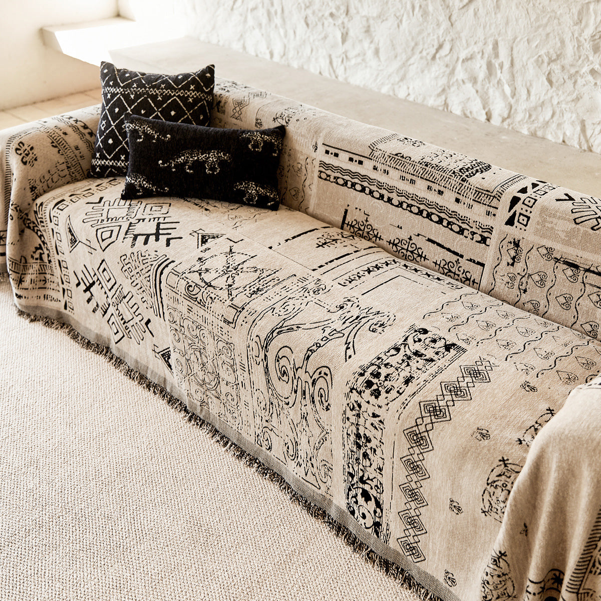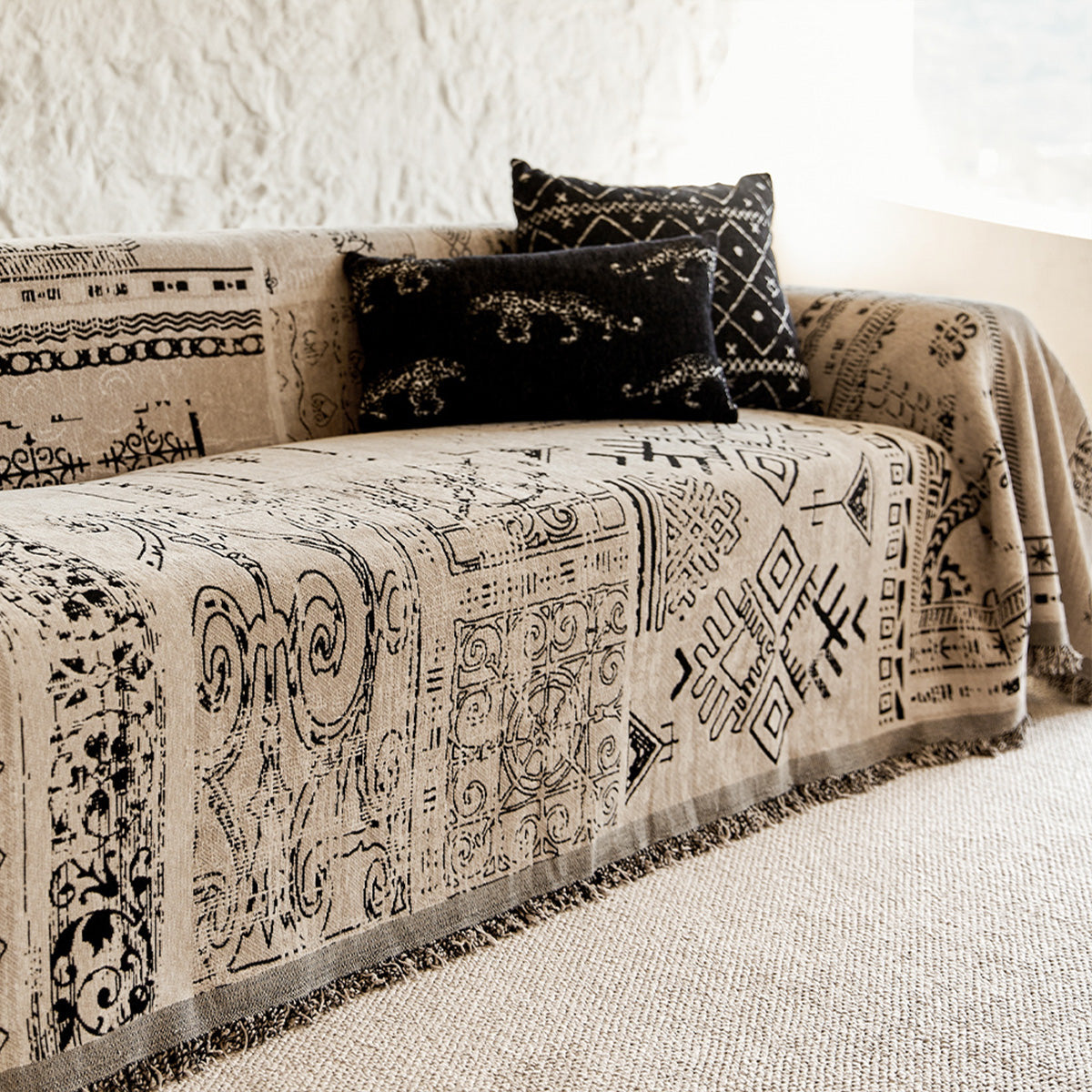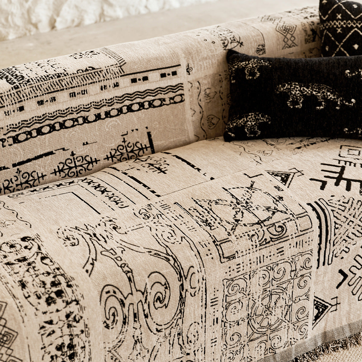 Bring global-inspired style and lasting comfort to your home with our Artisan Glyph Chenille Scratch-Resistant Sofa/Couch Cover. Woven in plush, high-density chenille with a bold glyph motif and subtle fringe edge, it adds rich texture while shielding your sofa from daily wear, pet fur, and scratches. Soft yet durable, this pet-friendly cover refreshes your décor and keeps seating looking pristine.