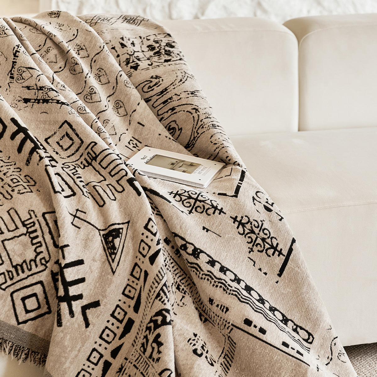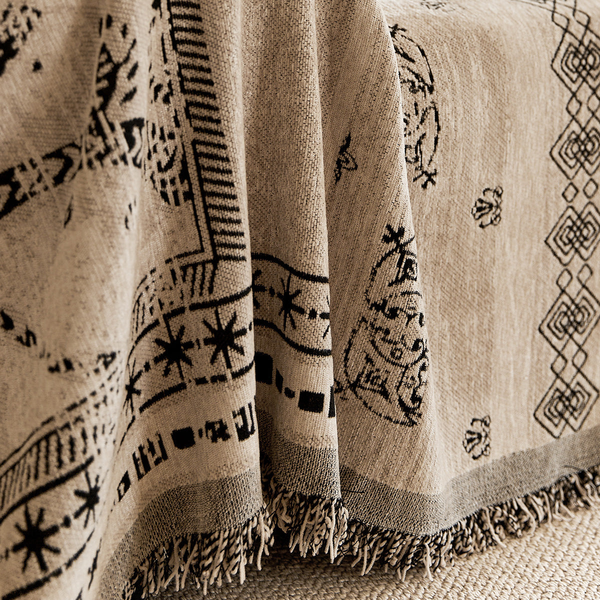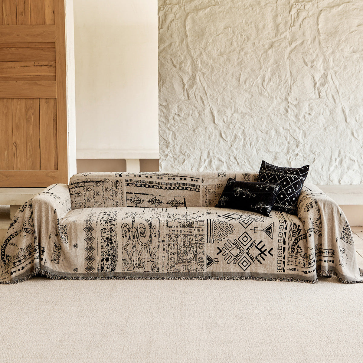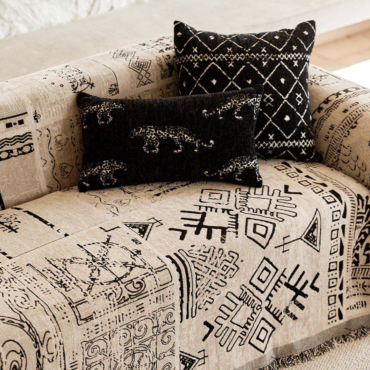 Bring global-inspired style and lasting comfort to your home with our Artisan Glyph Chenille Scratch-Resistant Sofa/Couch Cover. Woven in plush, high-density chenille with a bold glyph motif and subtle fringe edge, it adds rich texture while shielding your sofa from daily wear, pet fur, and scratches. Soft yet durable, this pet-friendly cover refreshes your décor and keeps seating looking pristine.