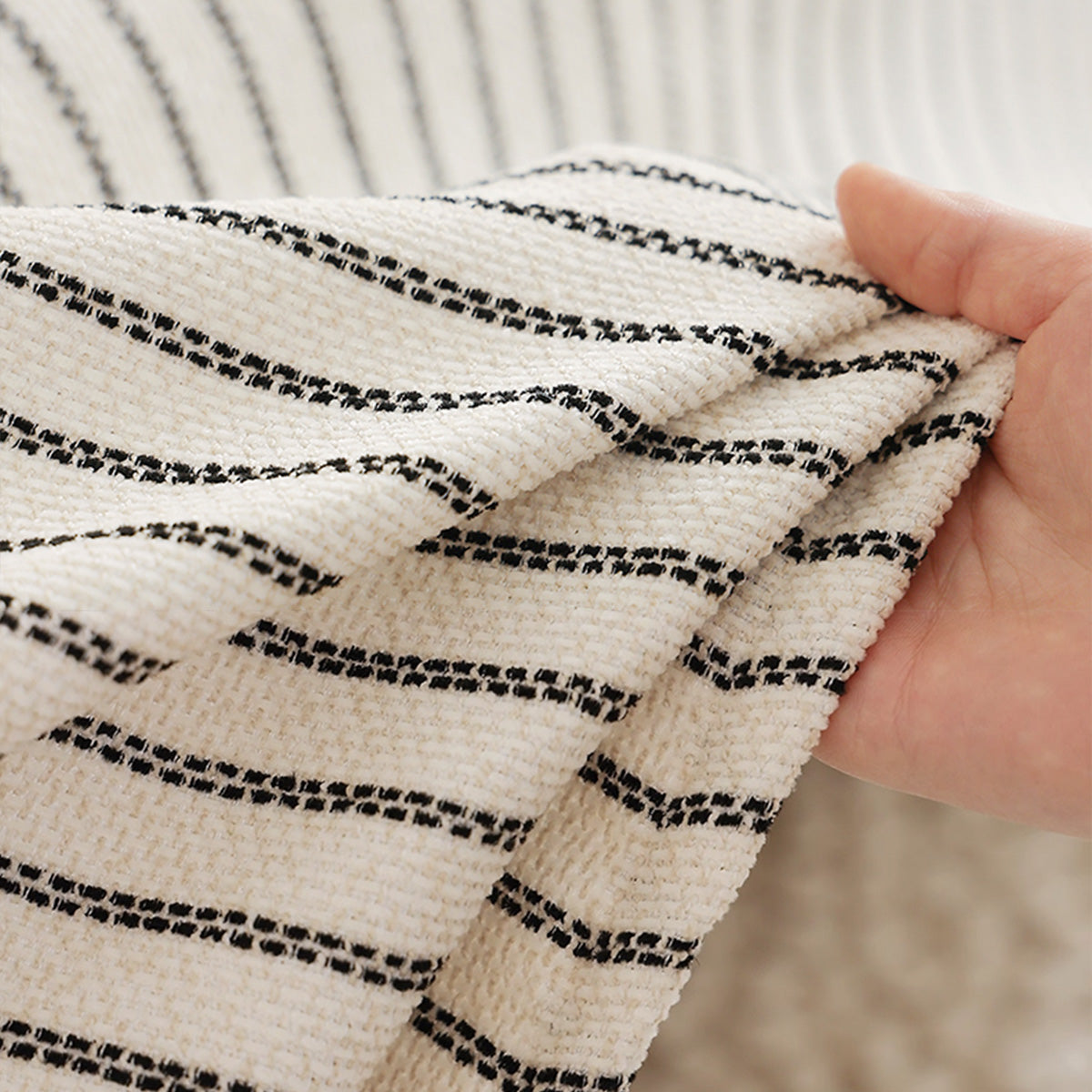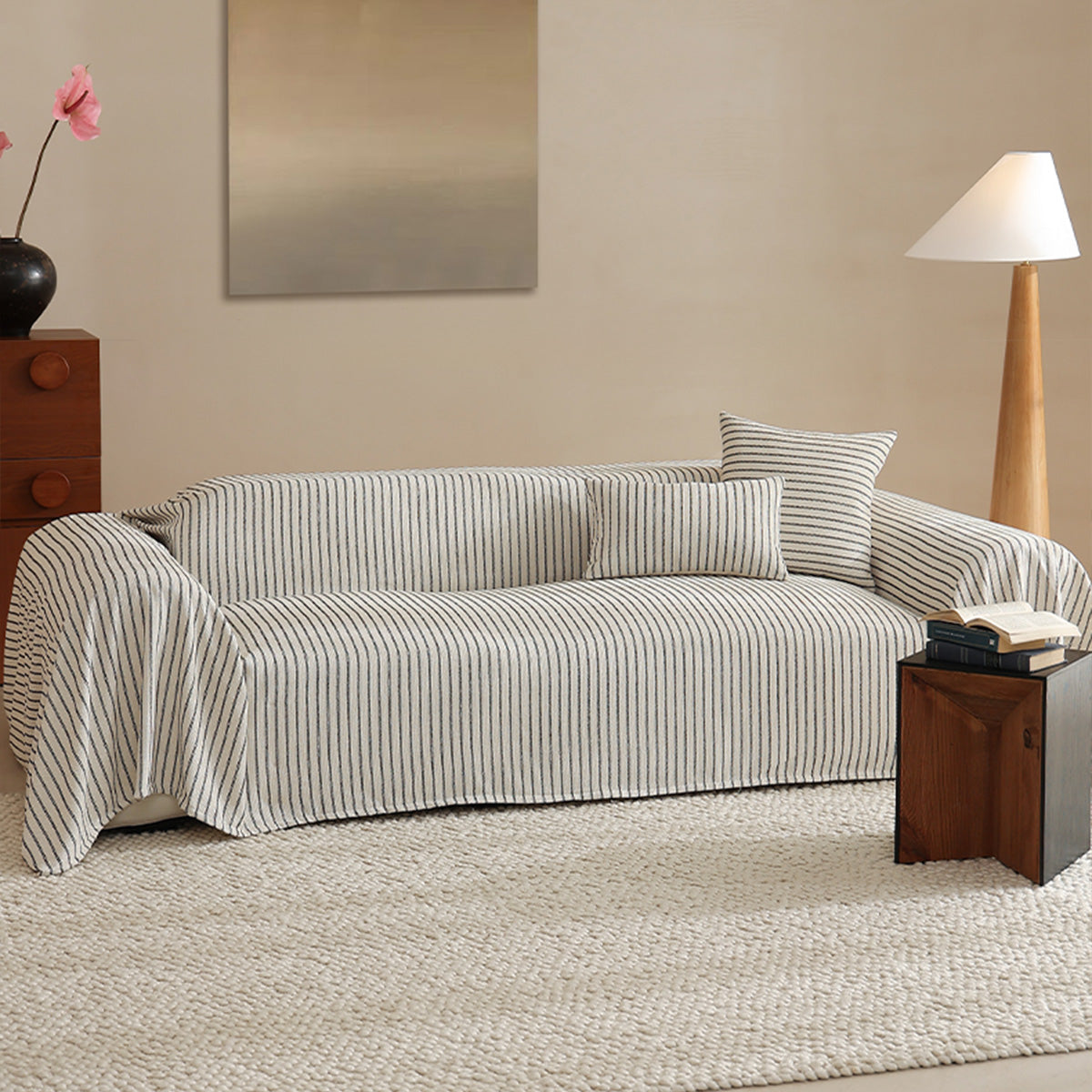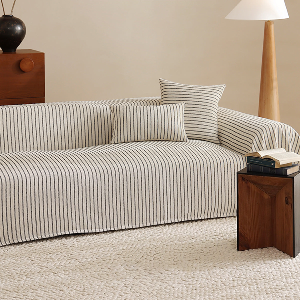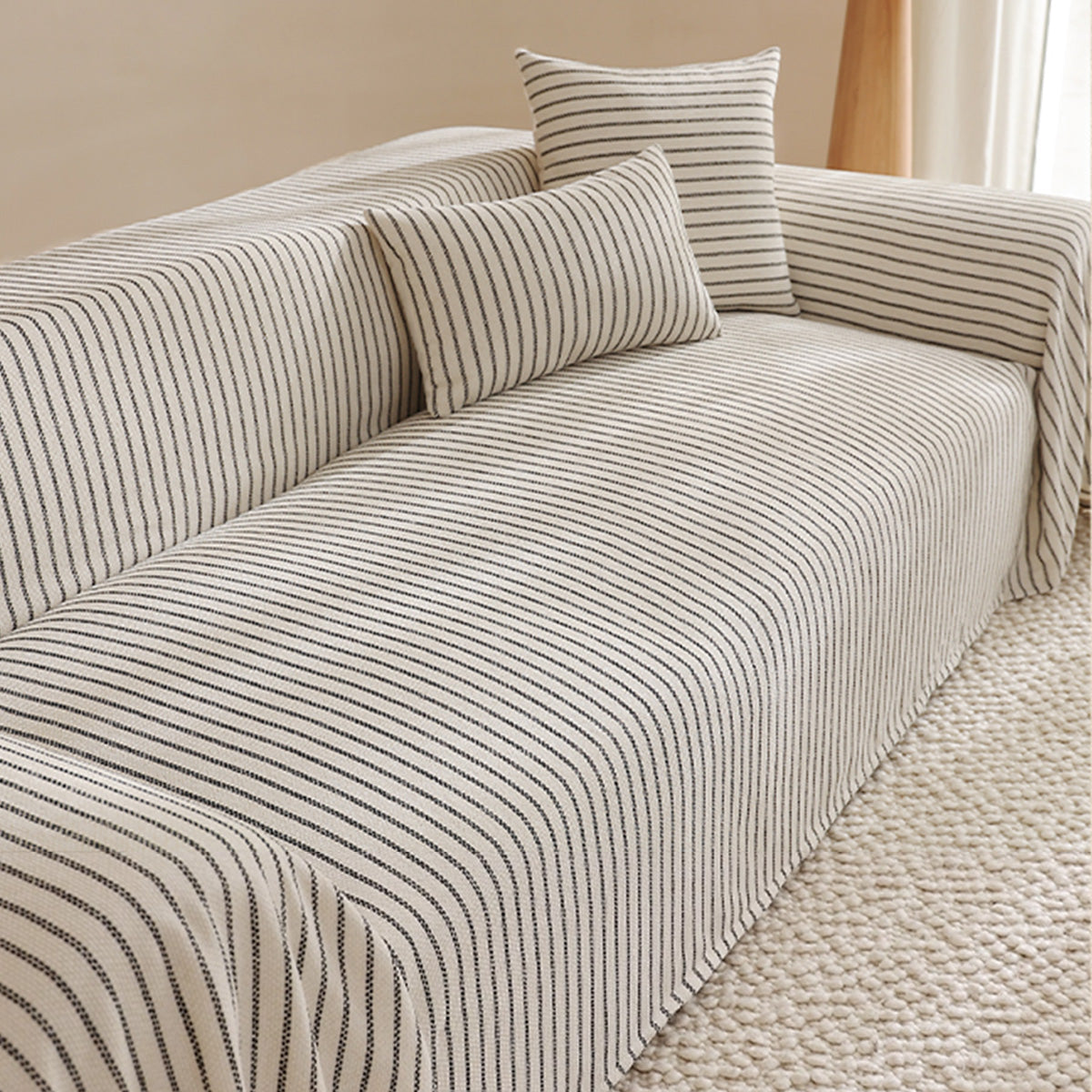 Refresh your seating with the tailored charm of our Classic Pinstripe Linen-Look Scratch-Resistant Sofa/Couch Cover. Woven with a natural, linen-like texture, it brings clean, modern lines to your space while guarding against everyday wear, pet hair, and scratches. The breathable faux-linen fabric feels sturdy yet comfortable, delivering a crisp upgrade that’s made to last.