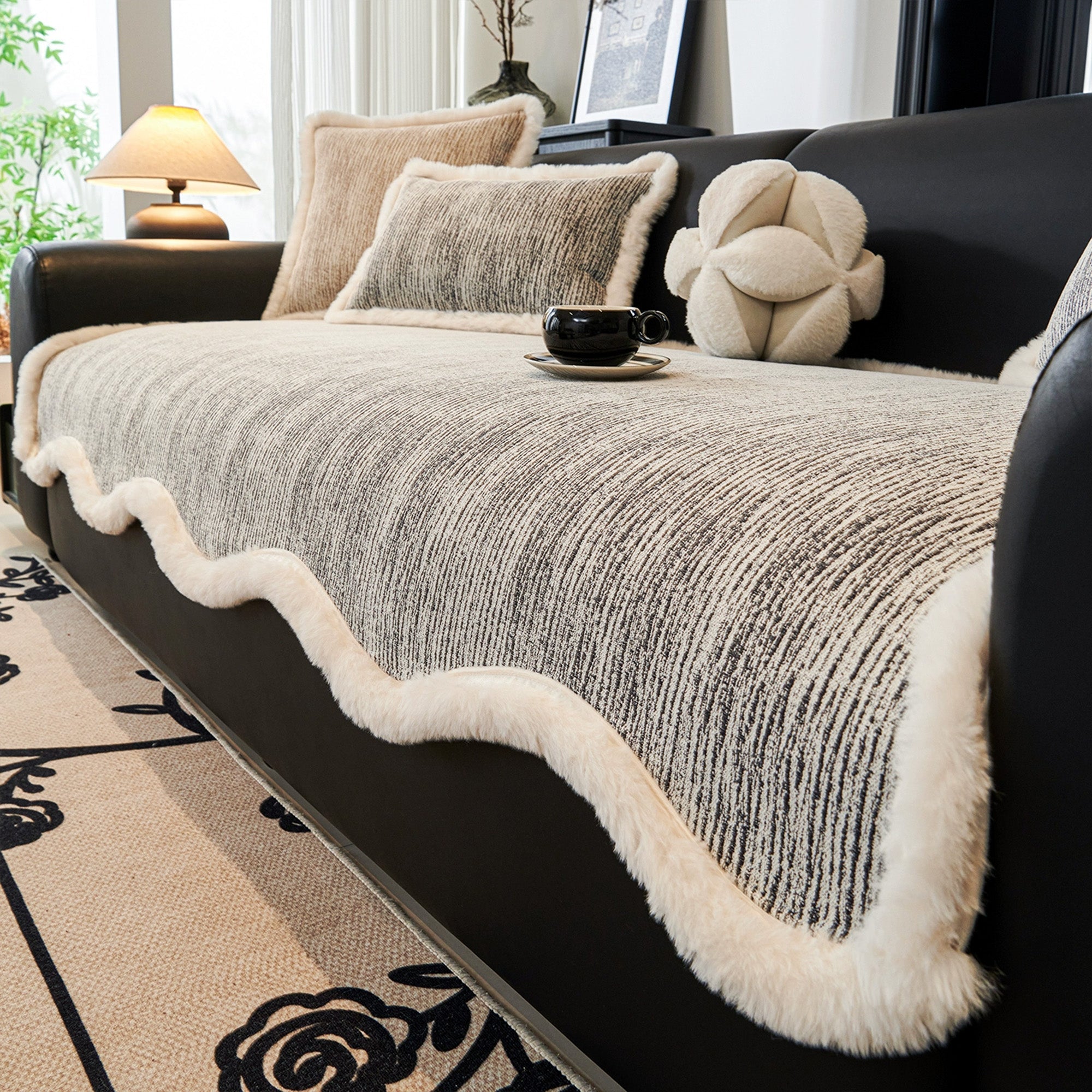 Cozy Fluff Chenille Plush-Edged Sofa/Couch Cover