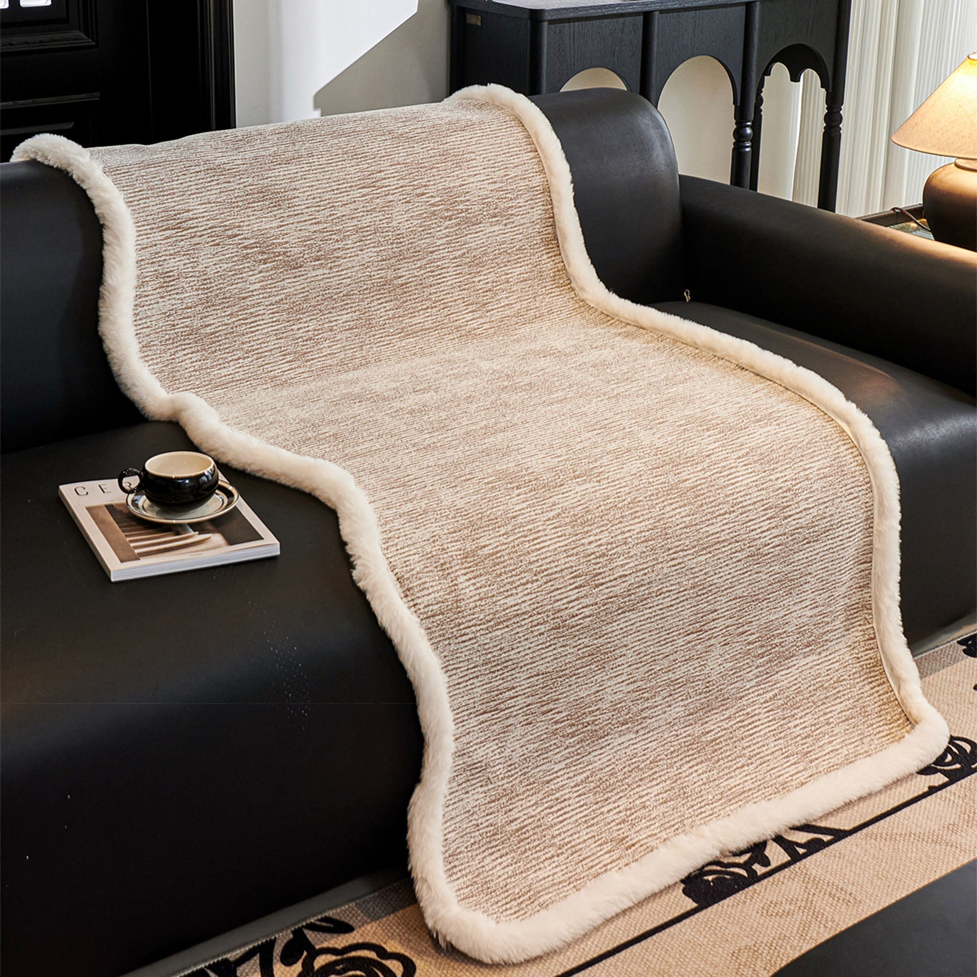 Elevate your living space with the Cozy Fluff Chenille Plush-Edged Sofa/Couch Cover, designed to combine luxurious texture with practical protection. The soft chenille fabric, enhanced with a plush fur-like border, creates a warm and inviting look while offering reliable coverage against daily wear, pet fur, and scratches. Its non-slip design ensures it stays securely in place, making it perfect for busy households.