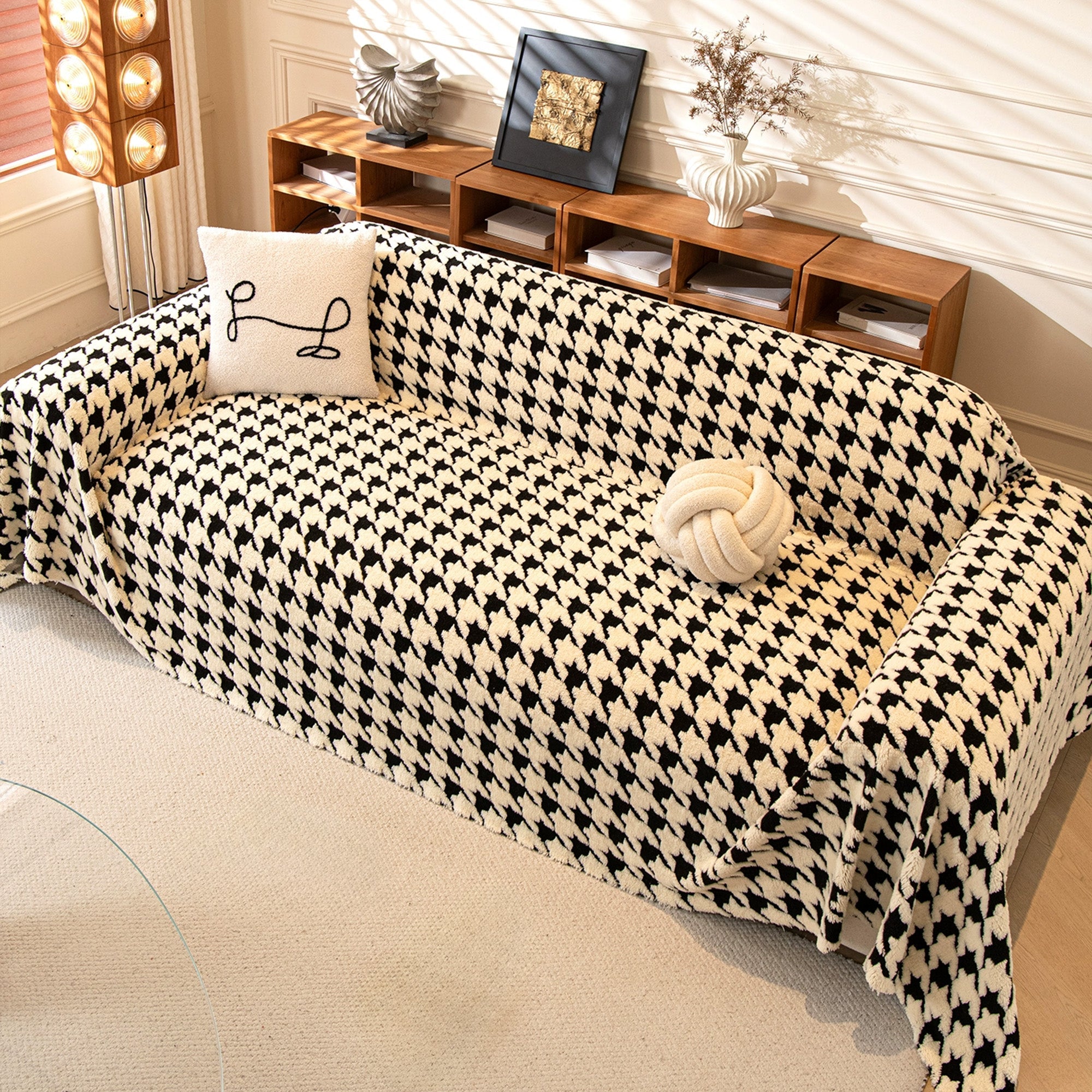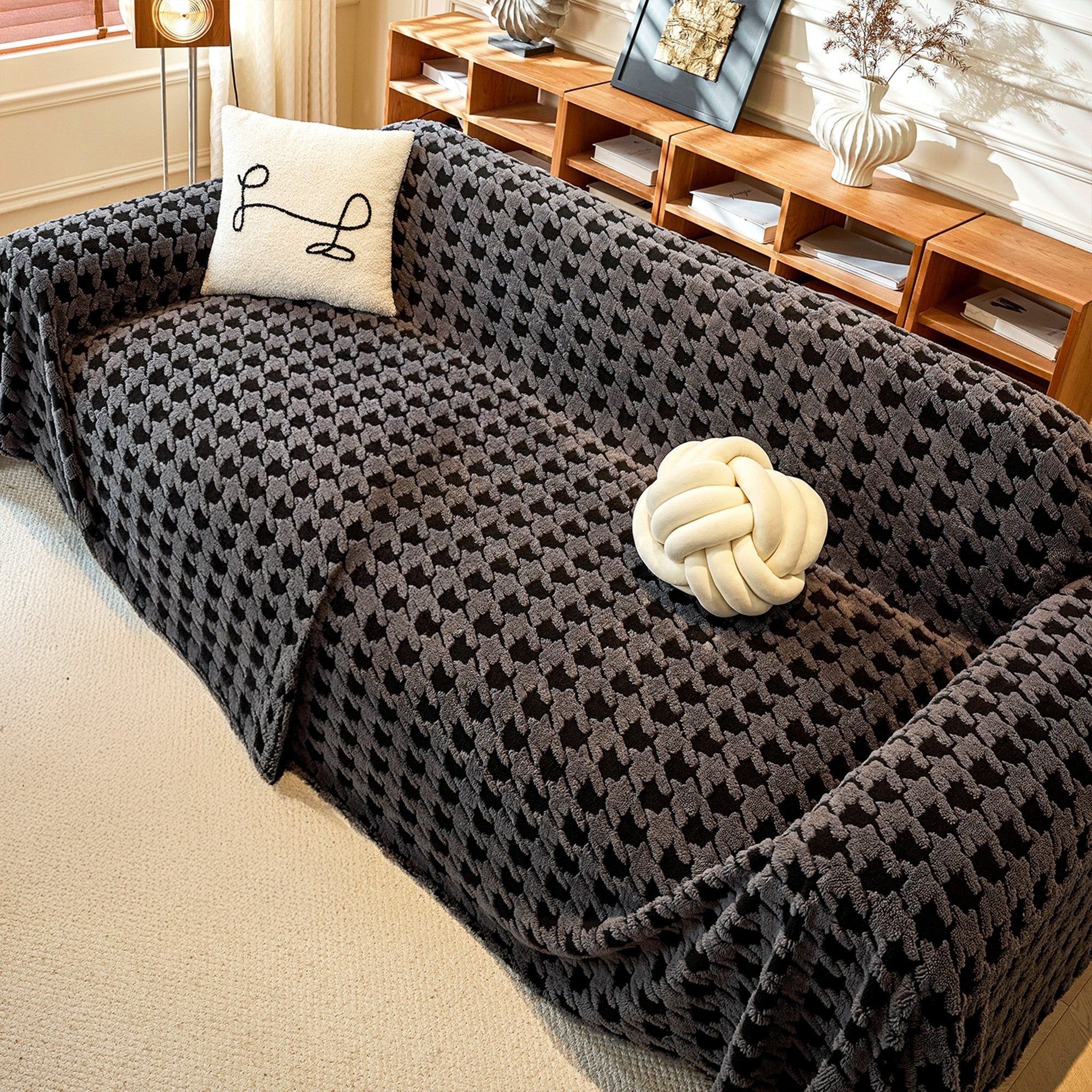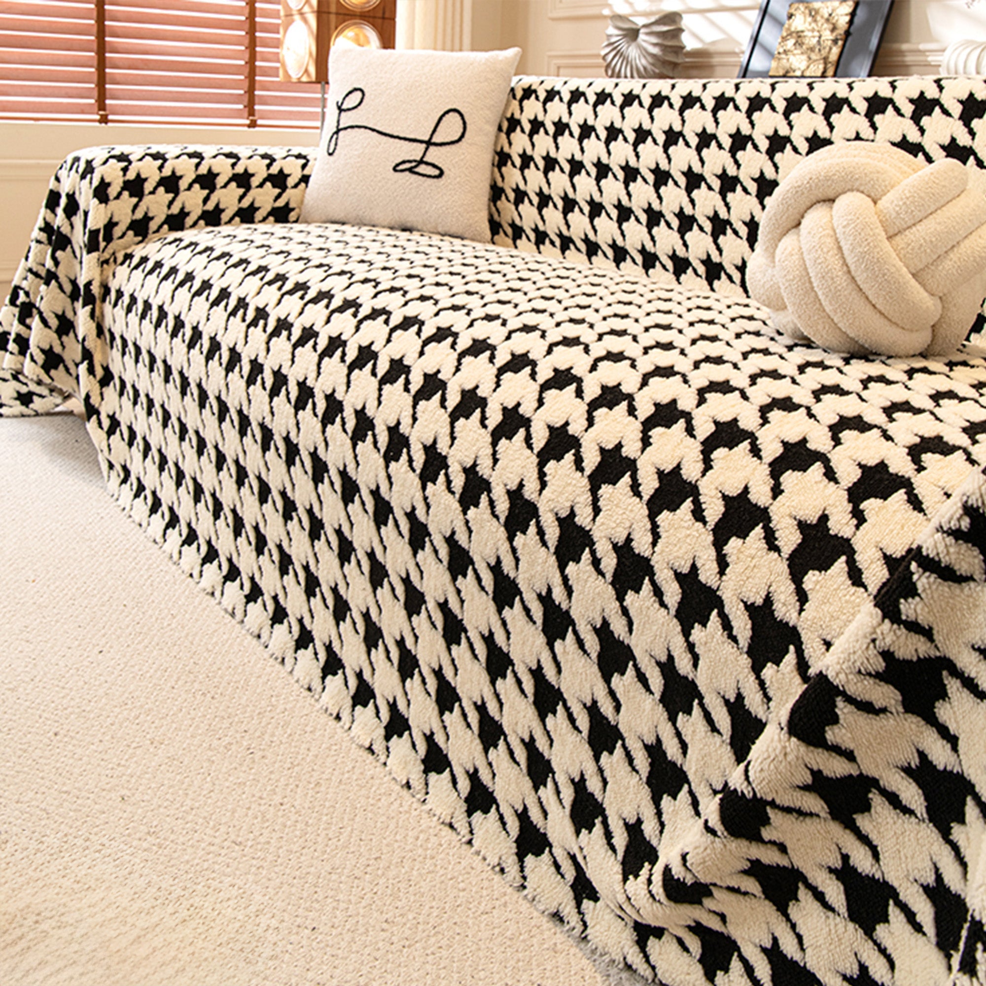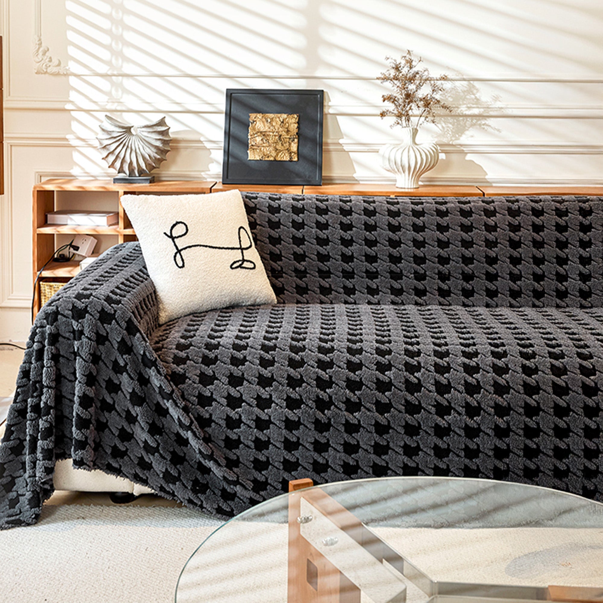 Cozy Houndstooth Plush Sofa/Couch Cover
