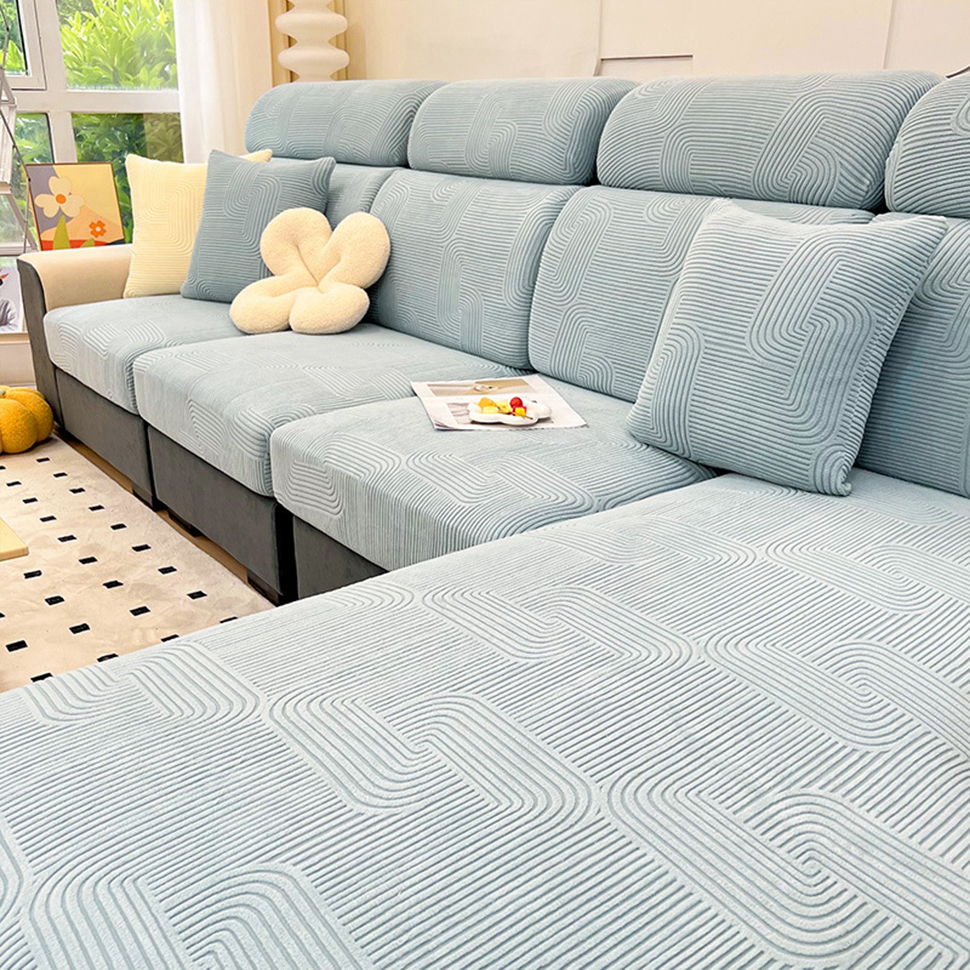 Protect your sofa in style with our Elegant Linear Jacquard Stretch Sofa Cover. Featuring a refined linear texture with a sculpted relief effect, this slipcover combines artistry with practicality. The premium jacquard weaving process delivers double durability while offering a sophisticated, minimalist pattern that enhances any living space. Designed for a snug fit, it provides 360° protection with excellent anti-slip performance, ensuring your sofa stays neat and secure no matter how you sit, lounge, or play.
