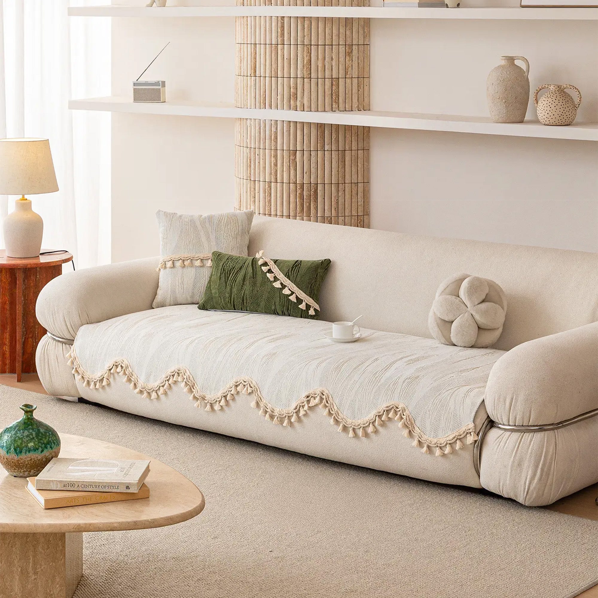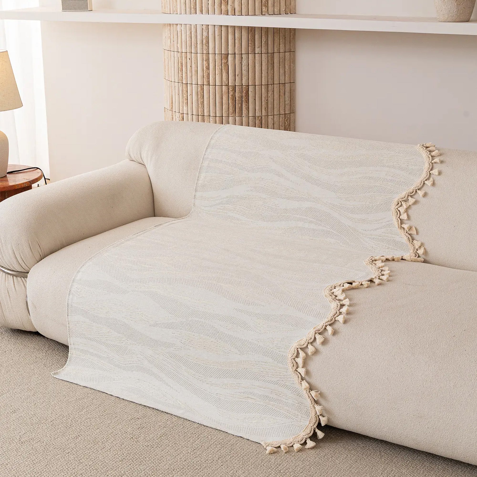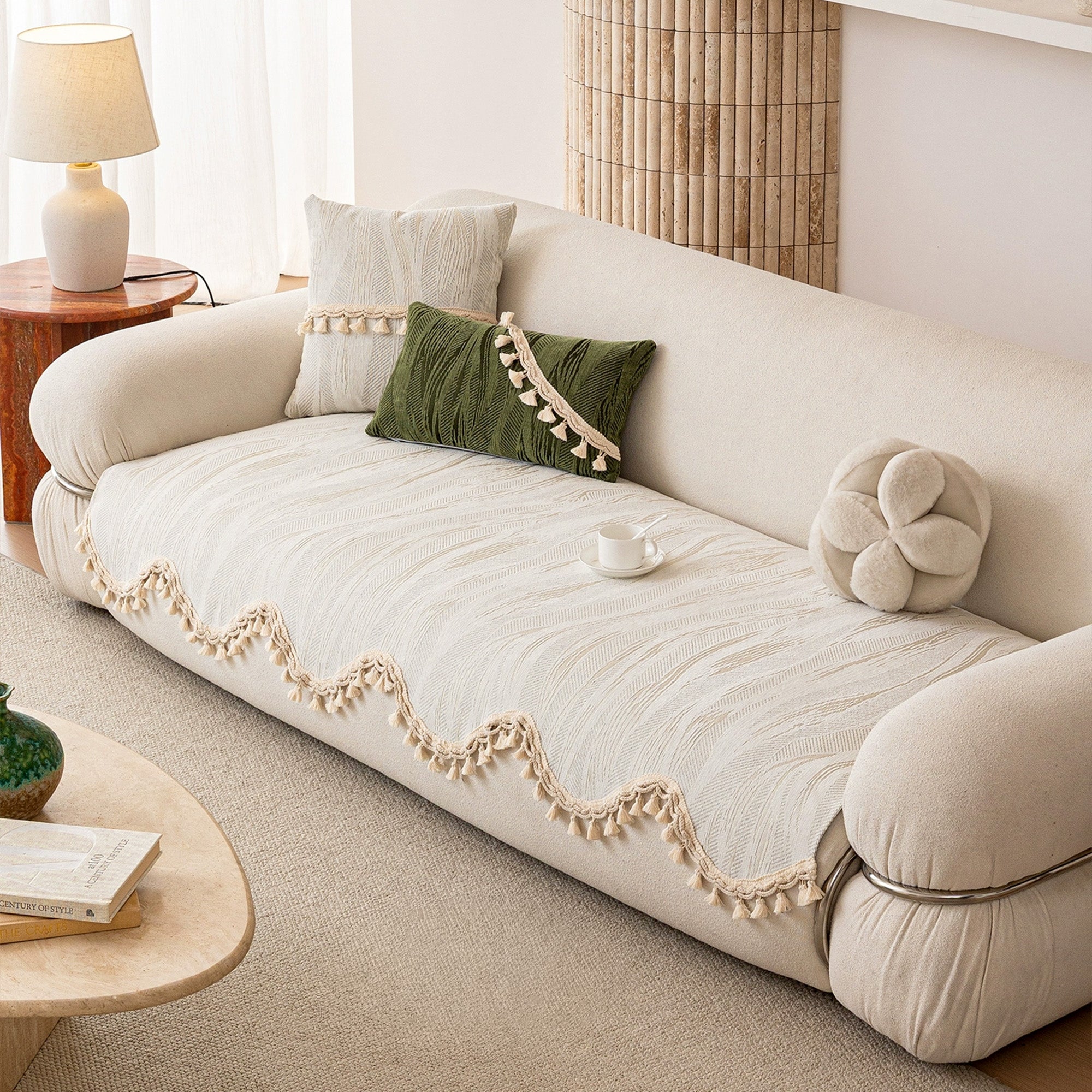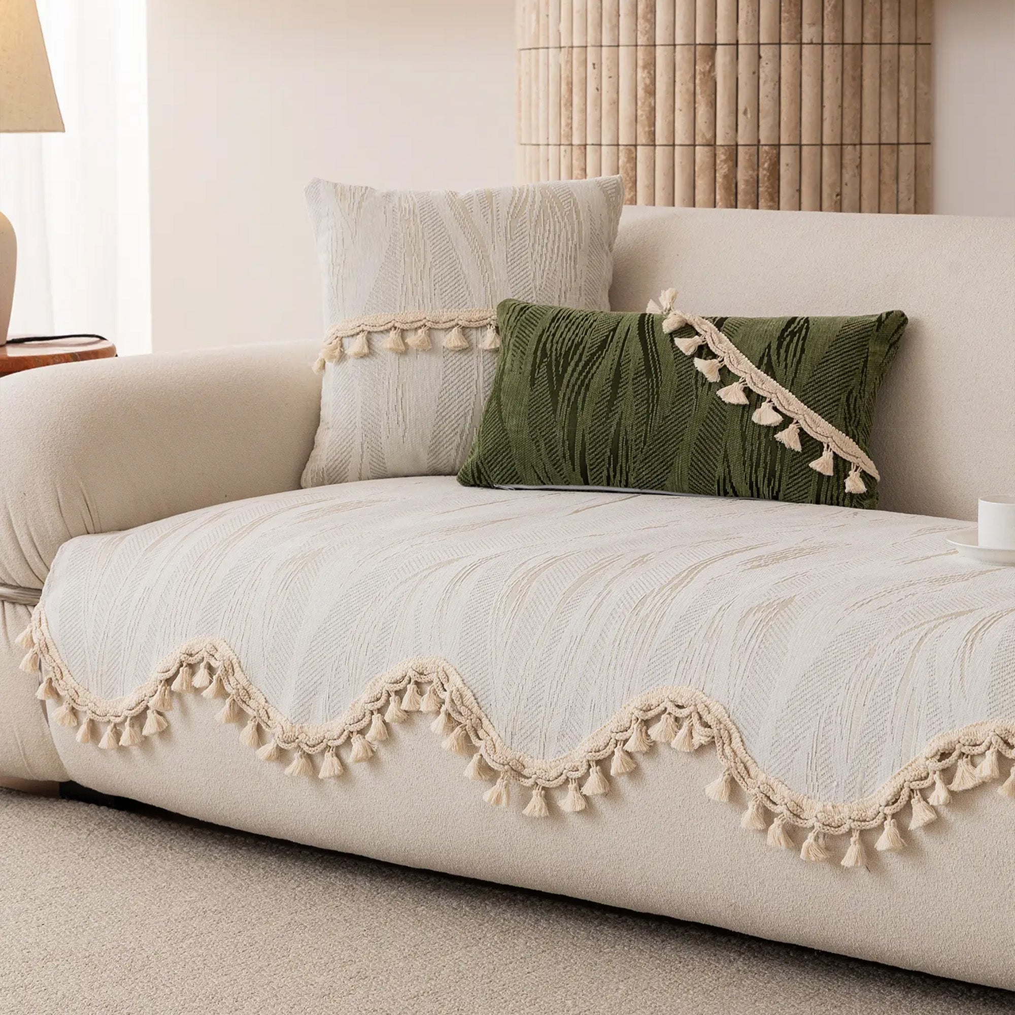Elegant Stripe Pom-Pom Chenille Nonslip Sofa/Couch Cover