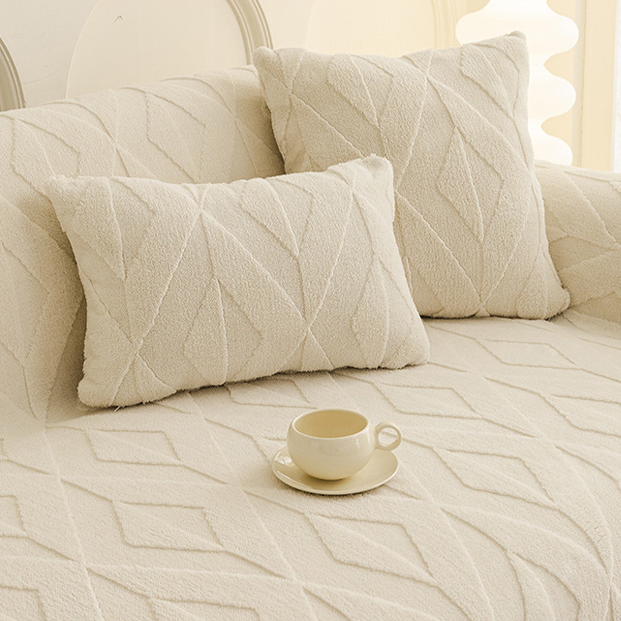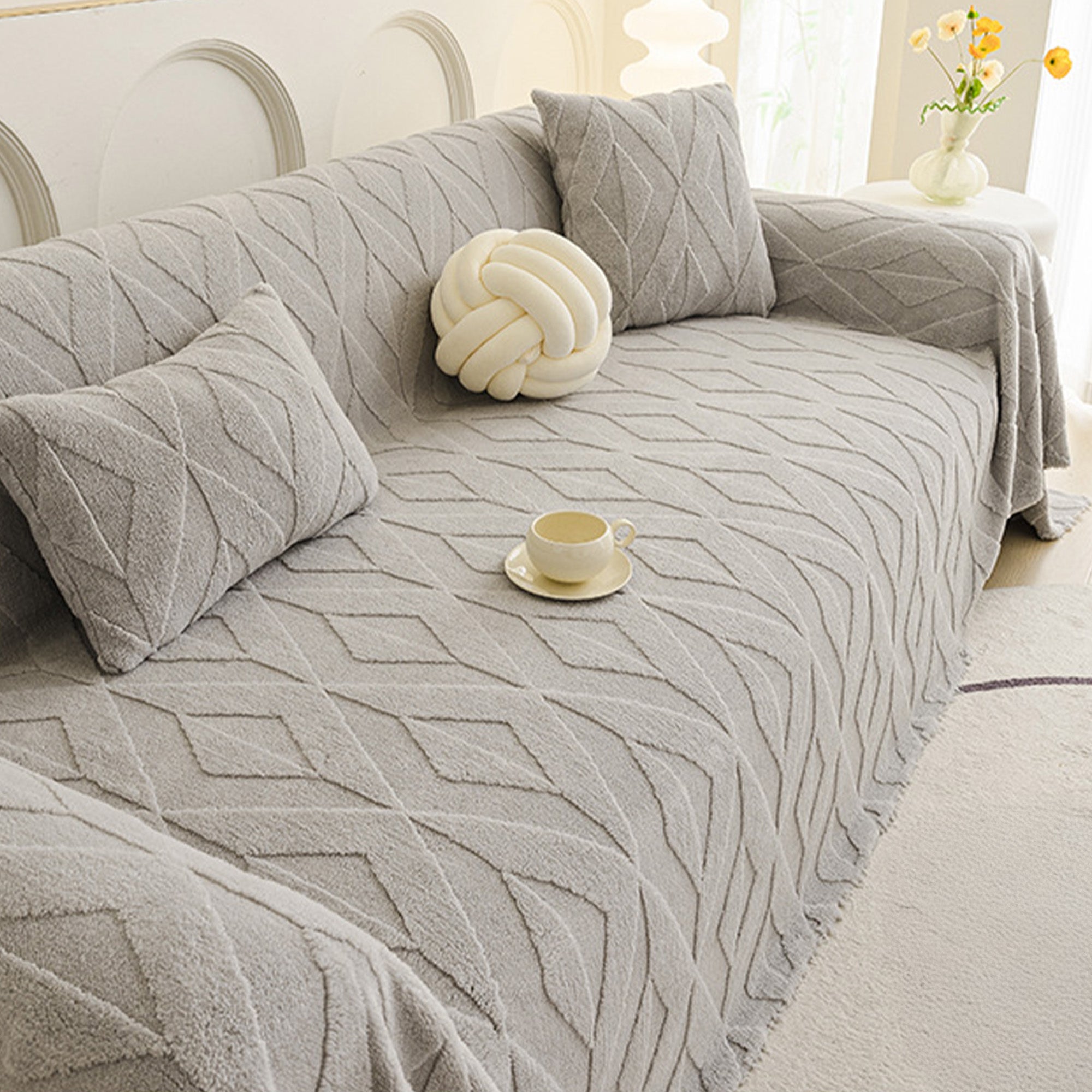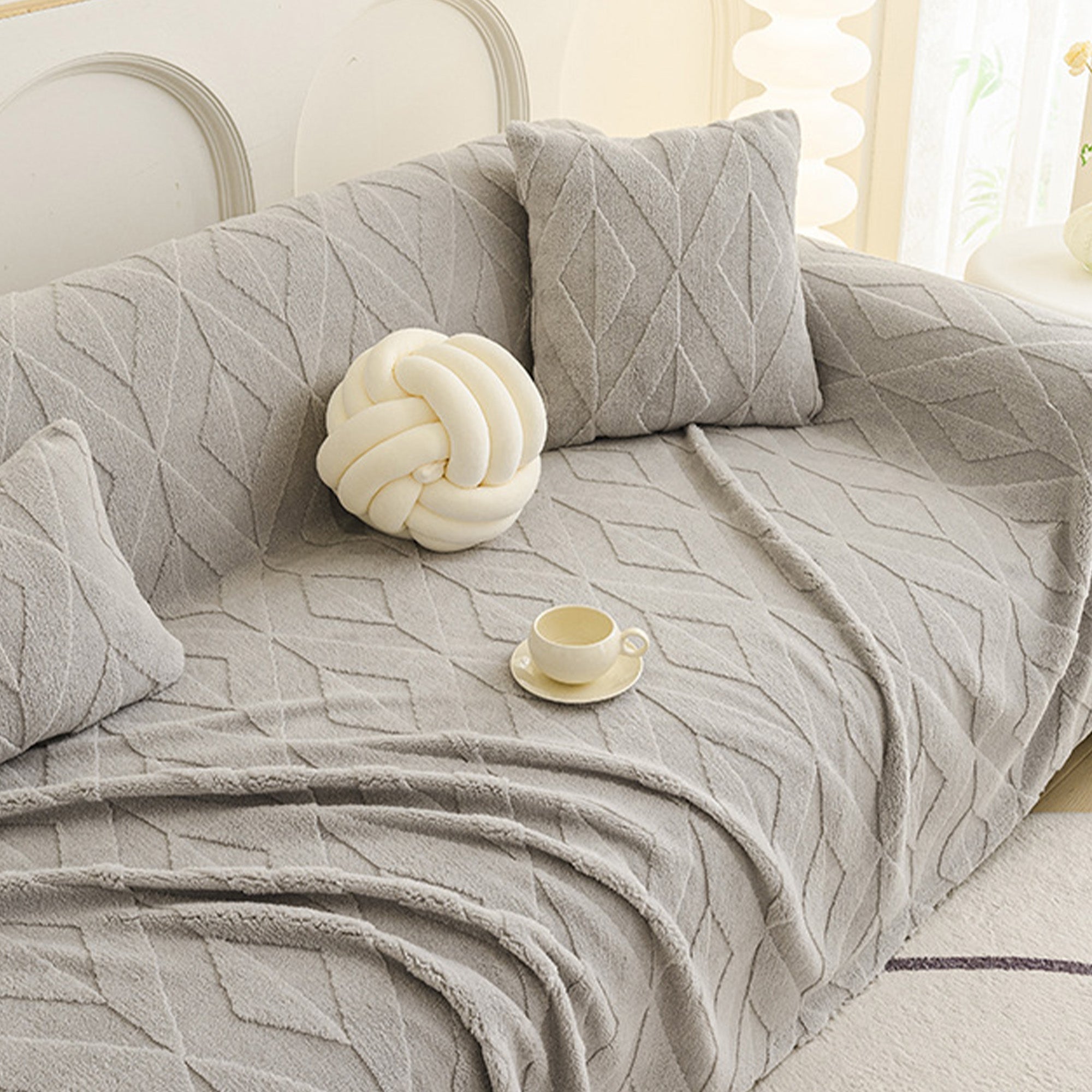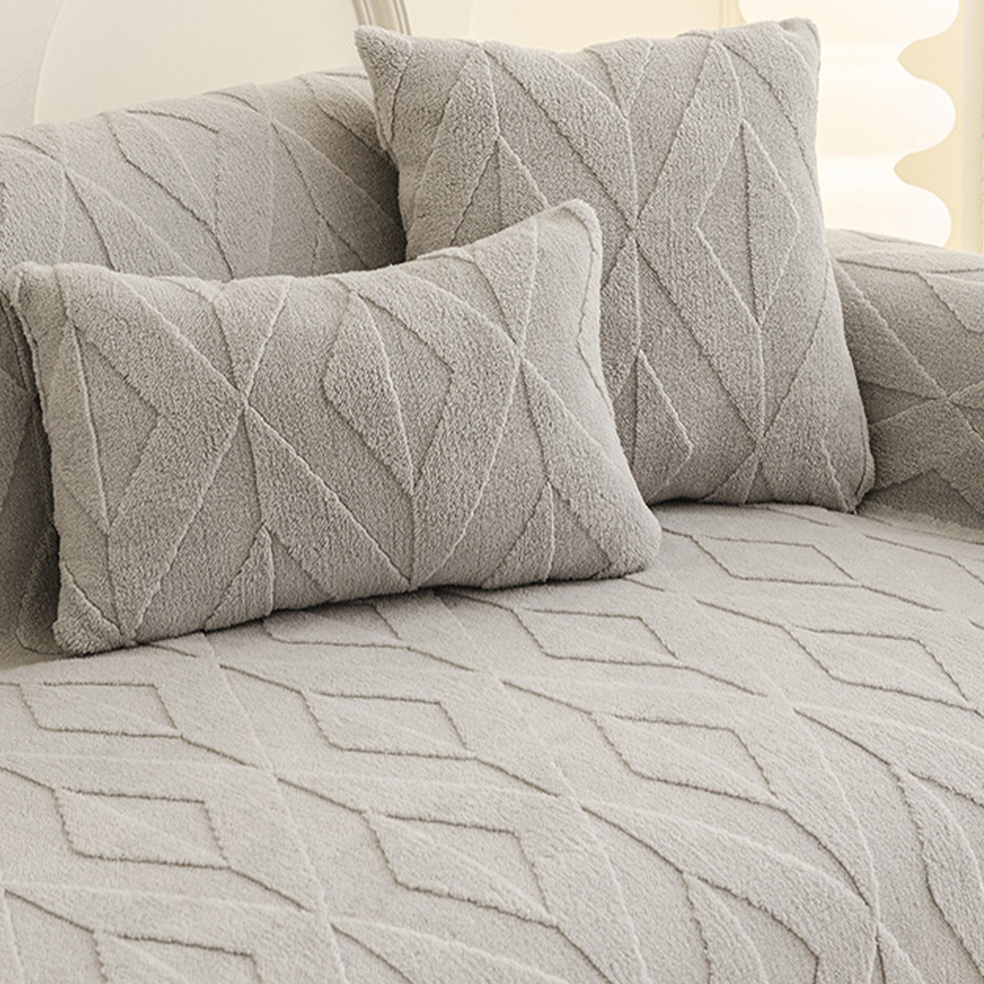 Inspired by elegant diamond patterns, this plush sofa cover brings refined comfort and sophistication to any living space. Crafted from premium plush fabric, it offers a soft yet durable feel while providing reliable protection against daily wear, pet hair, and scratches. Designed with both beauty and practicality in mind, it effortlessly enhances your décor while keeping your sofa fresh and clean.