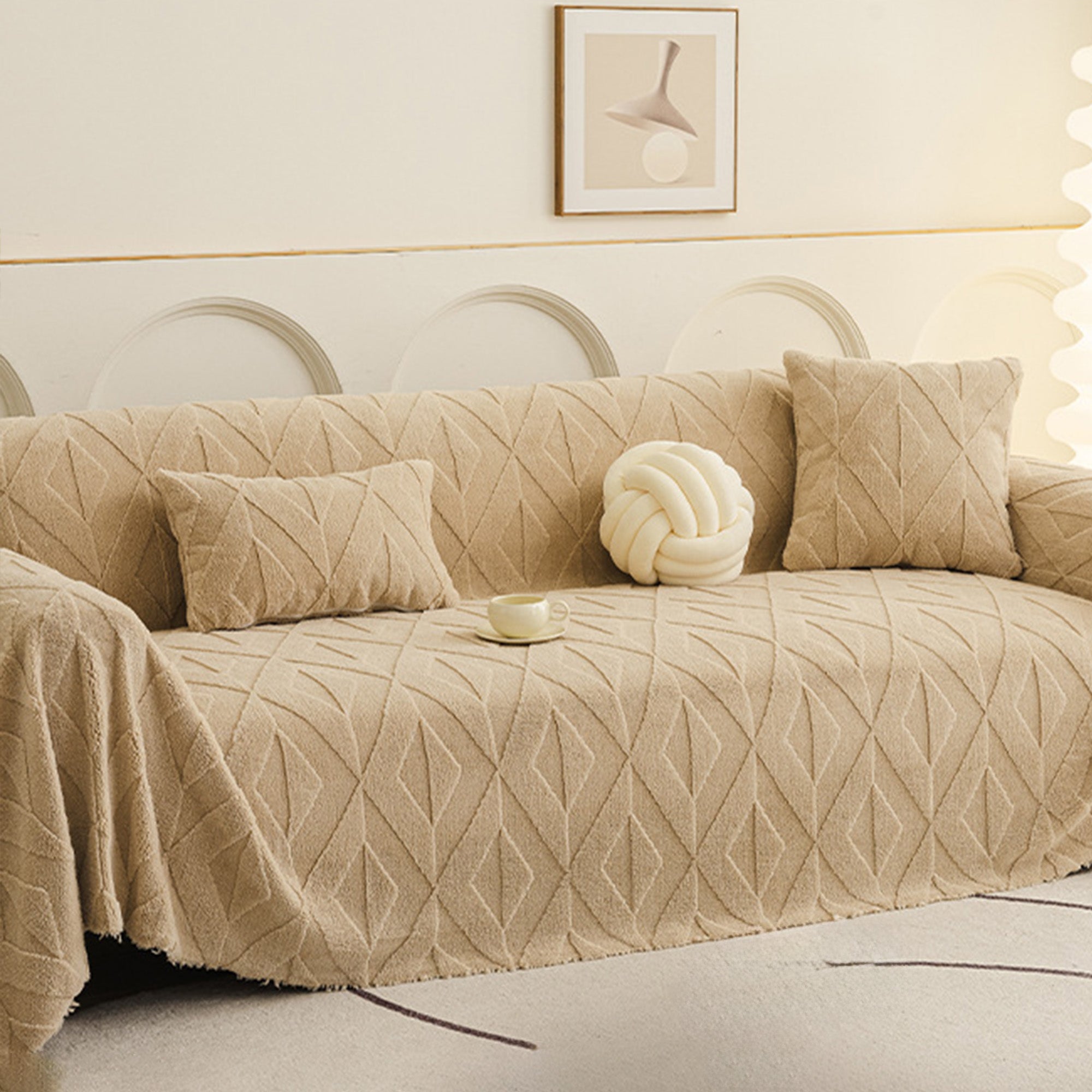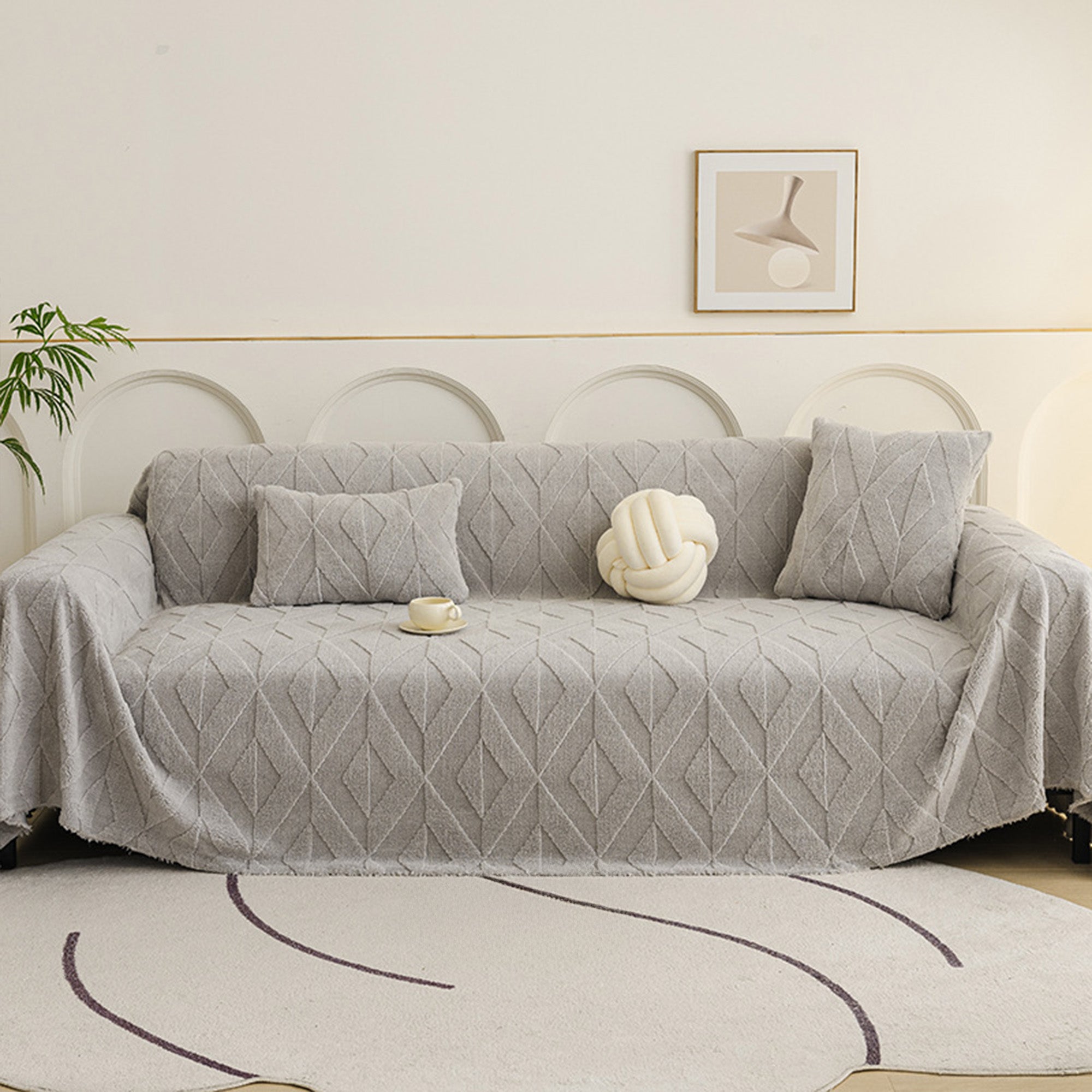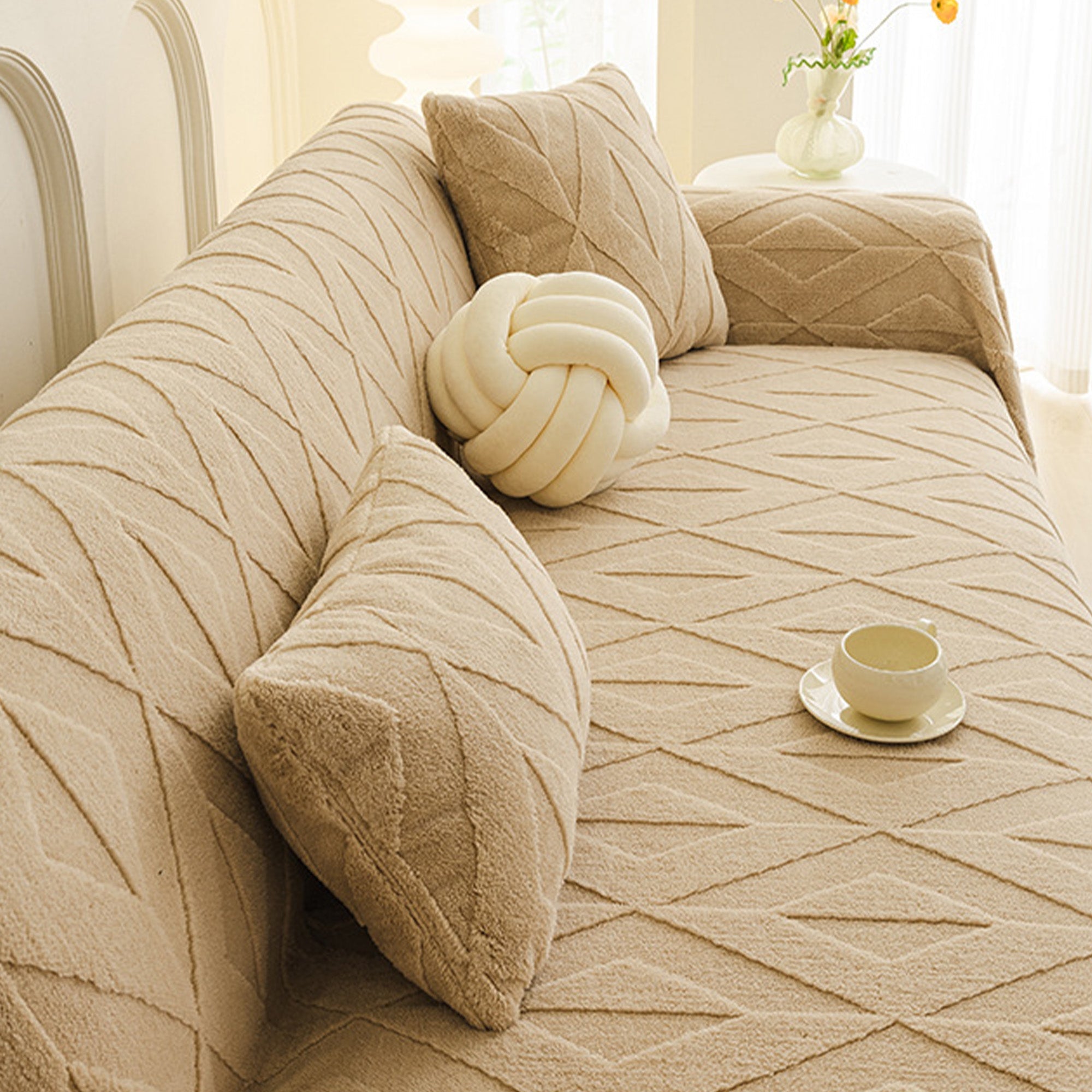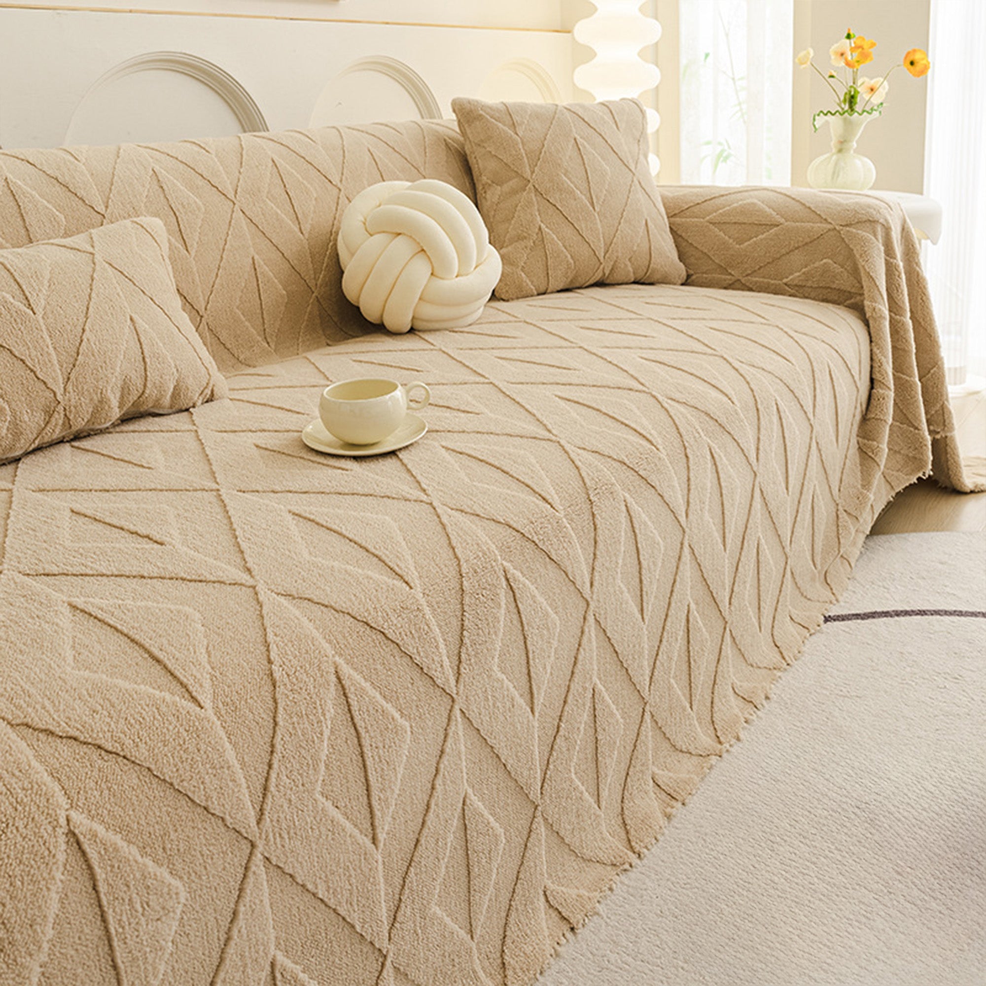Inspired by elegant diamond patterns, this plush sofa cover brings refined comfort and sophistication to any living space. Crafted from premium plush fabric, it offers a soft yet durable feel while providing reliable protection against daily wear, pet hair, and scratches. Designed with both beauty and practicality in mind, it effortlessly enhances your décor while keeping your sofa fresh and clean.