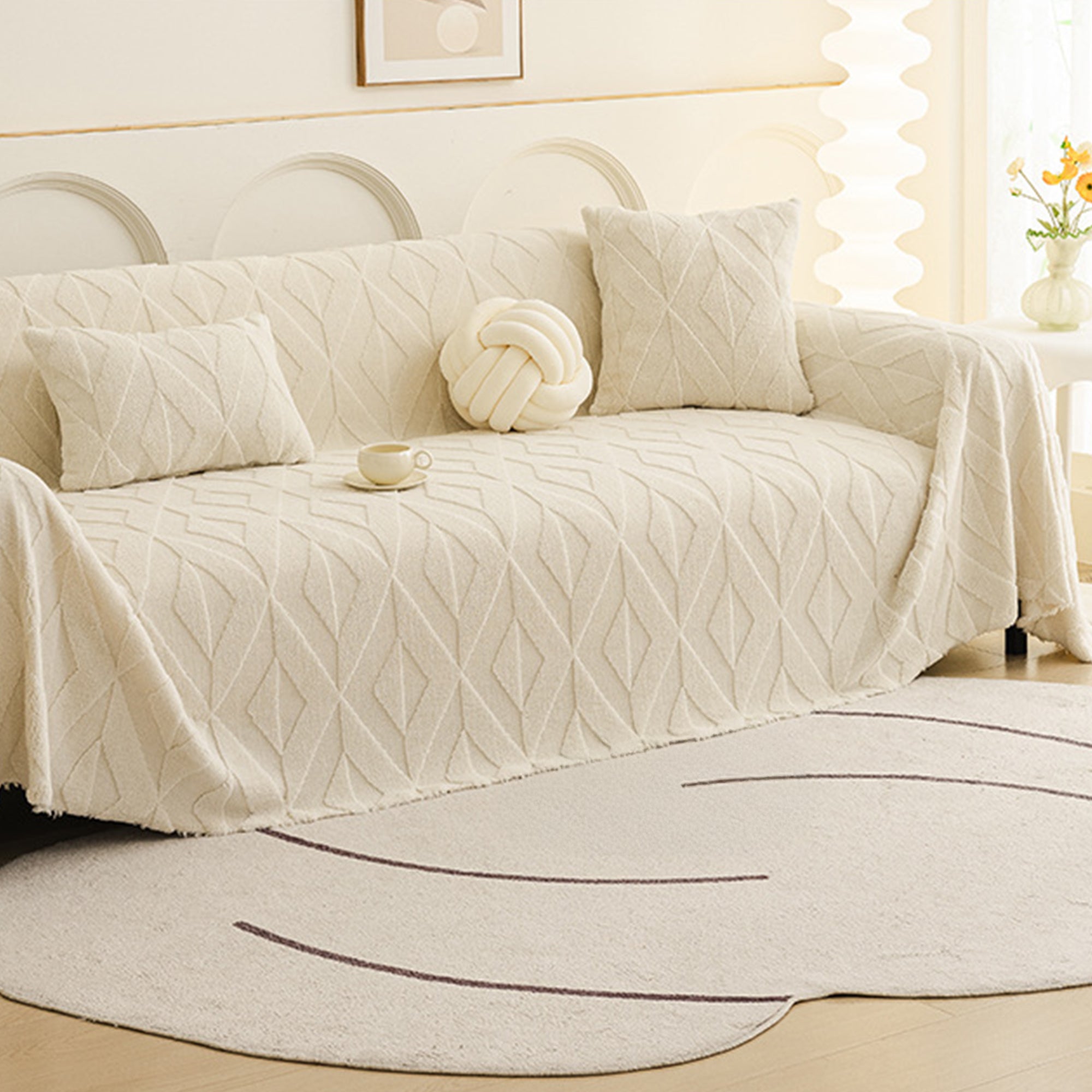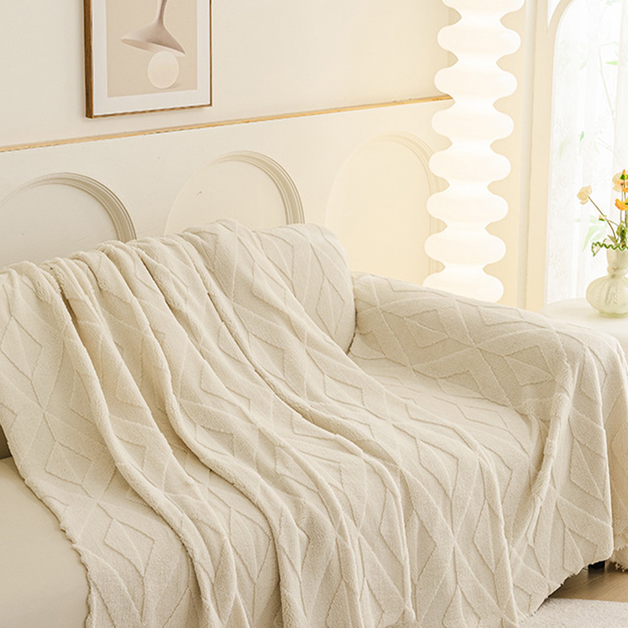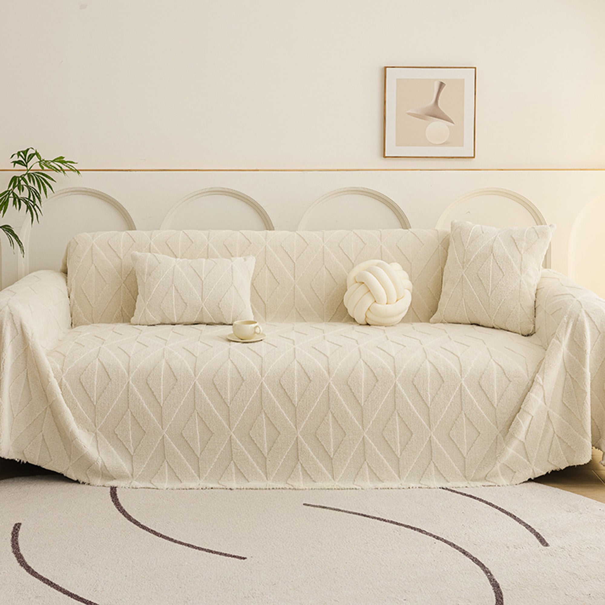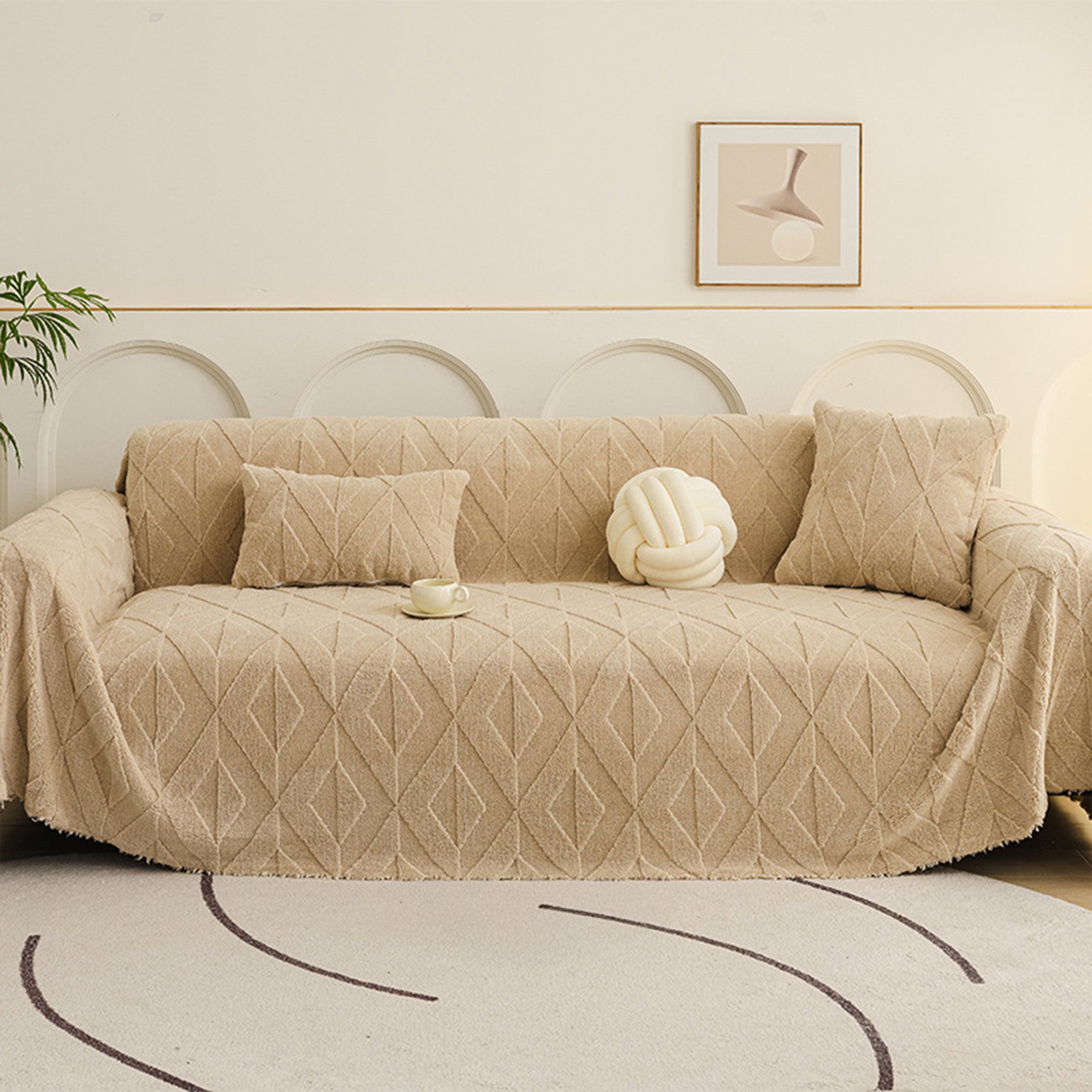 Inspired by elegant diamond patterns, this plush sofa cover brings refined comfort and sophistication to any living space. Crafted from premium plush fabric, it offers a soft yet durable feel while providing reliable protection against daily wear, pet hair, and scratches. Designed with both beauty and practicality in mind, it effortlessly enhances your décor while keeping your sofa fresh and clean.
