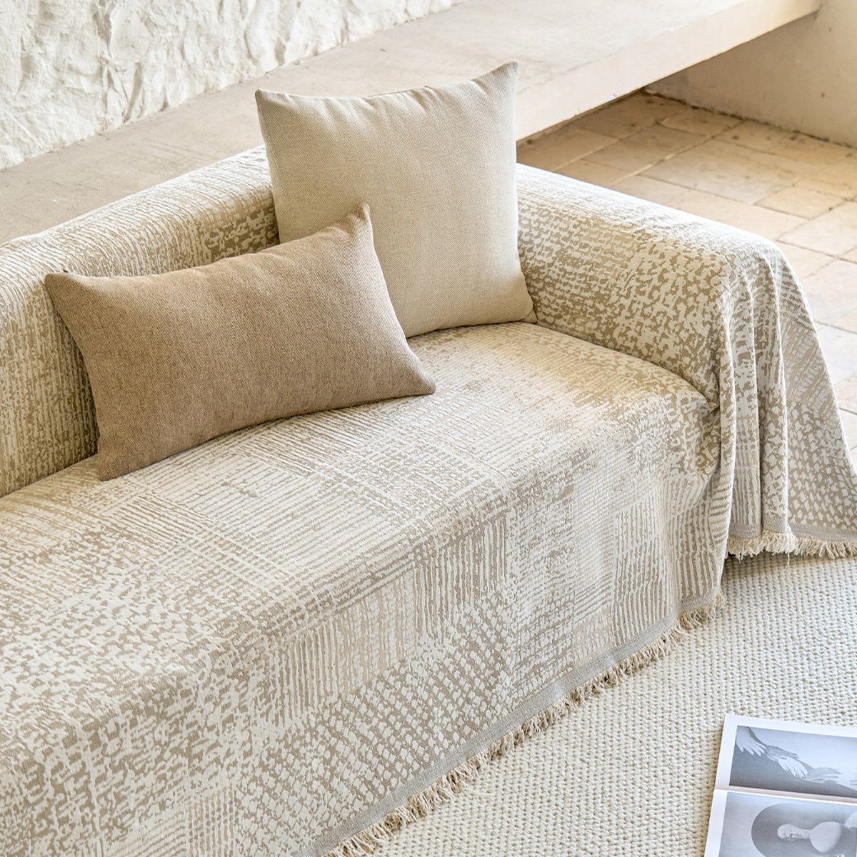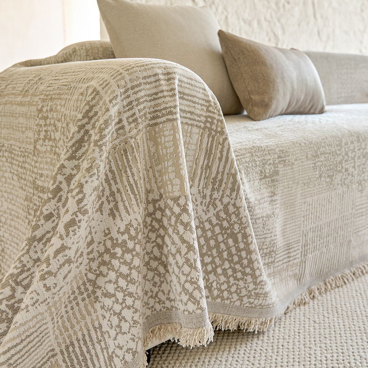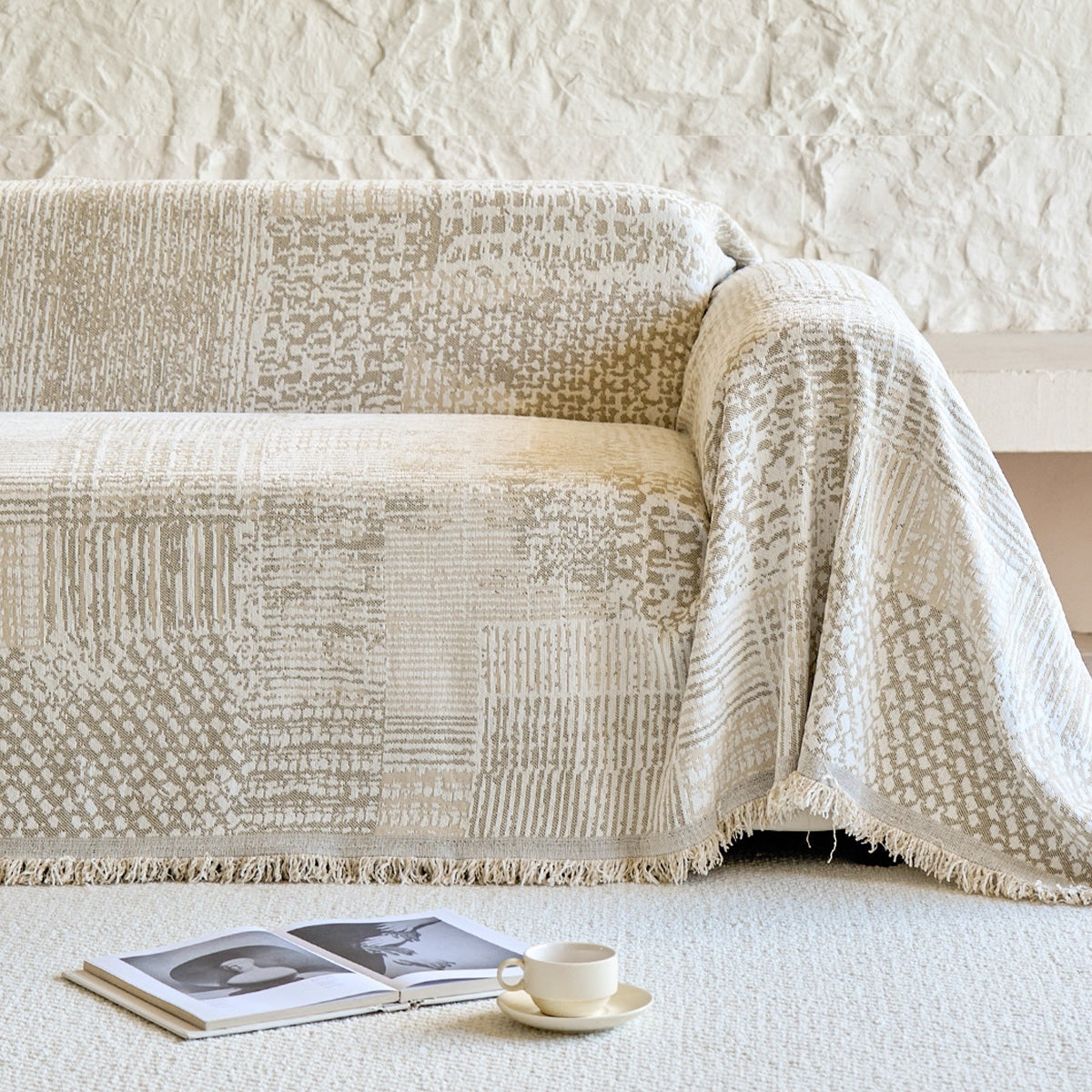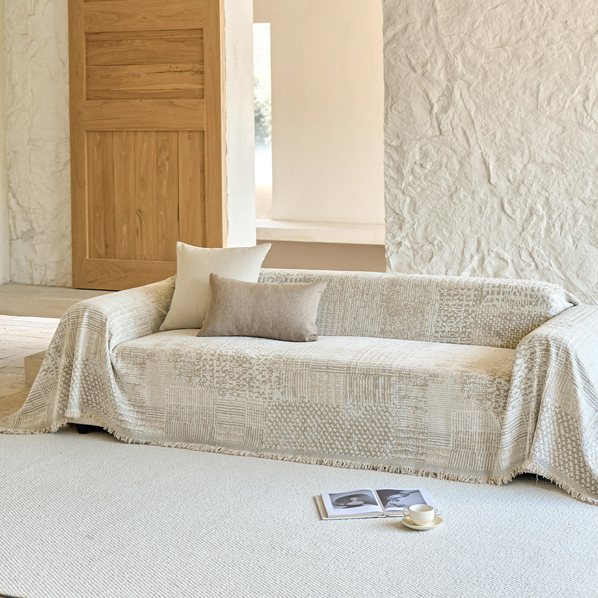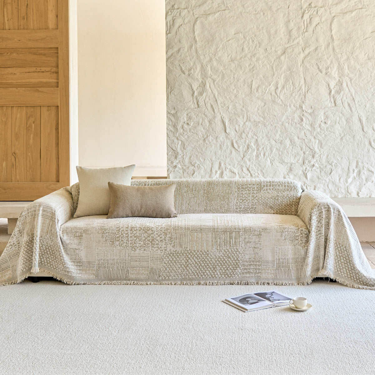 Bring refined elegance and comfort to your living space with our Textured Mosaic Chenille Scratch-Resistant Sofa/Couch Cover. Woven in plush chenille with a softly layered mosaic pattern and fringe edging, it adds depth and character while protecting your sofa from daily wear, pet fur, and scratches. The high-quality chenille fabric feels luxuriously soft yet remains durable for everyday use.