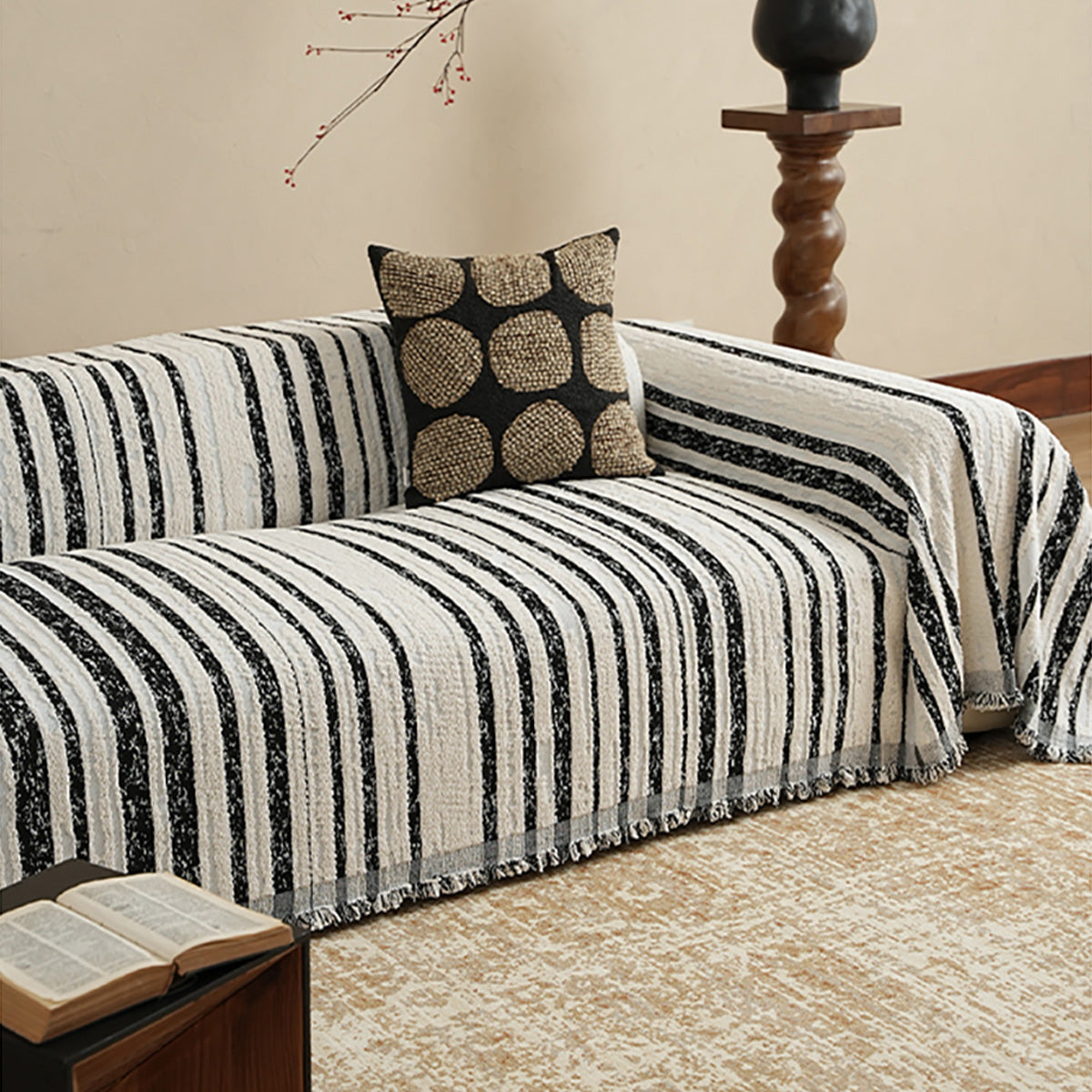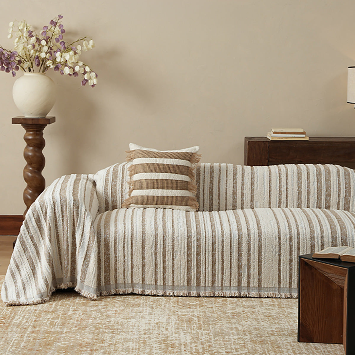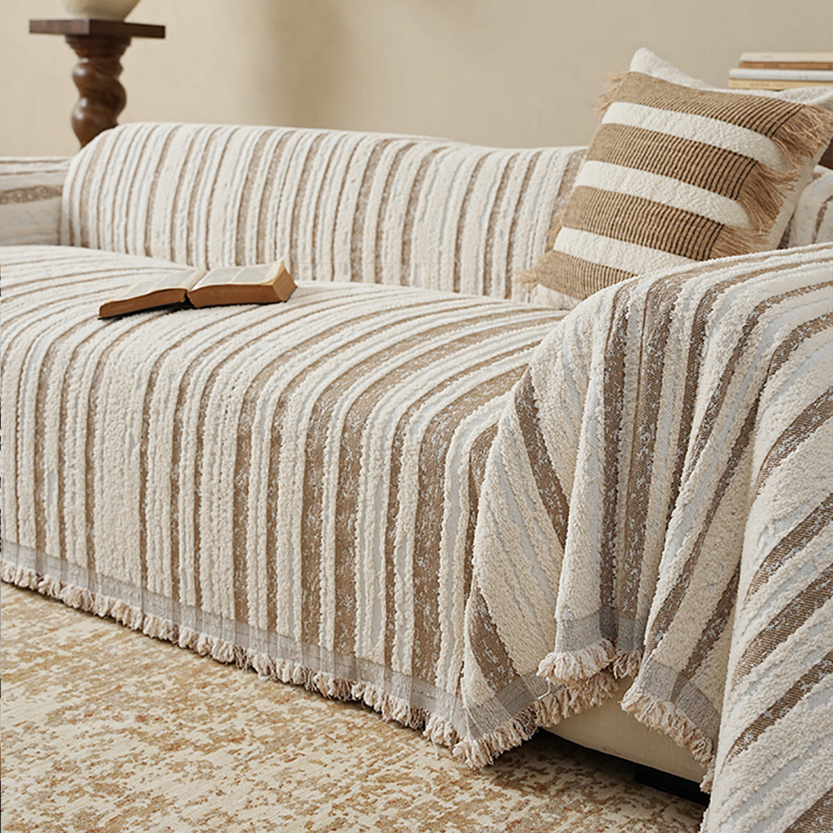 Bring refined texture and effortless style to your living space with our Textured Stripe Chenille Scratch-Resistant Sofa/Couch Cover. Woven from plush, high-density chenille, this cover features dimensional stripes with subtle fringe edging—adding depth while protecting your sofa from everyday wear, pet hair, and scratches. Soft yet durable and pet-friendly, it elevates your décor and keeps seating looking fresh.