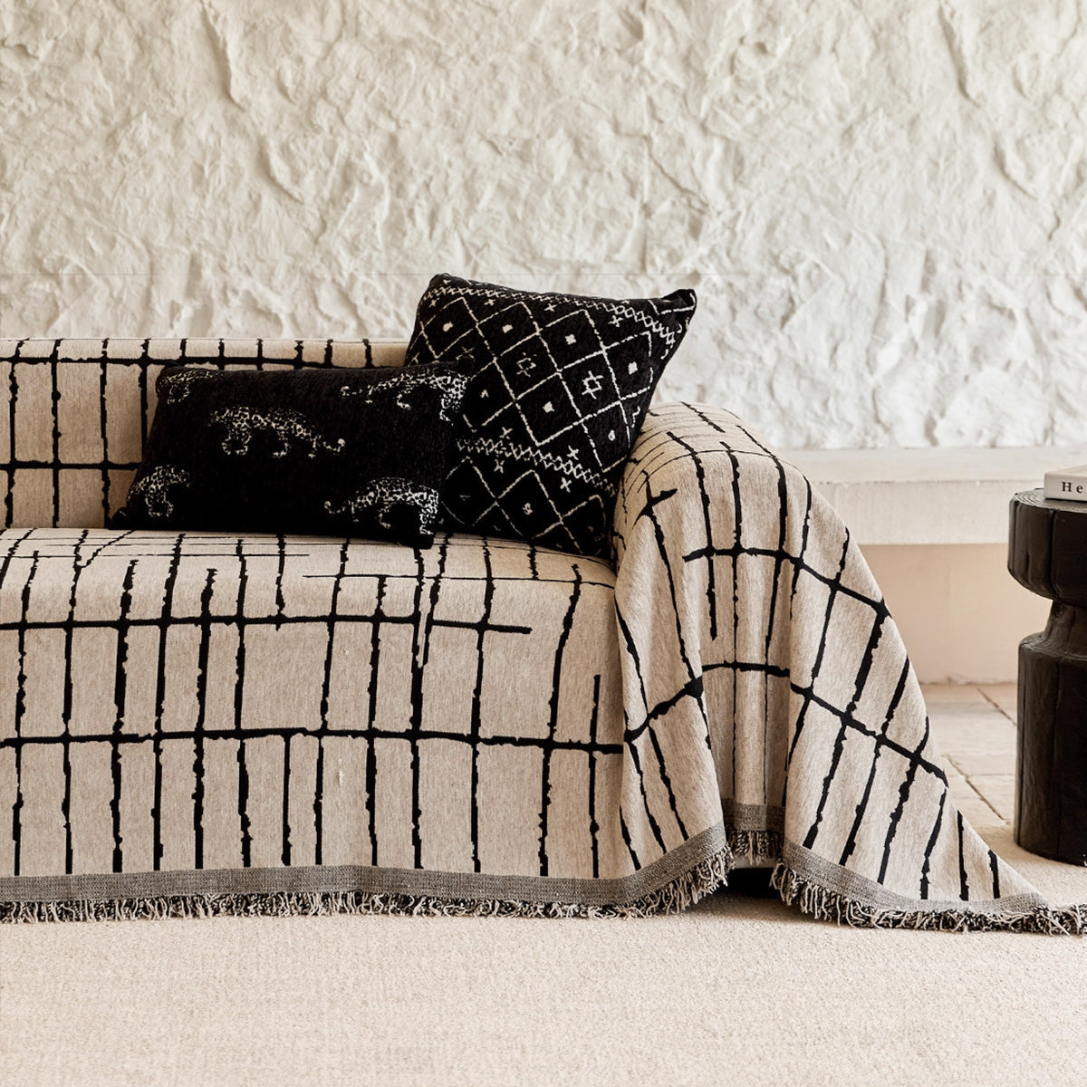 Refresh your space with graphic simplicity. Our Urban Grid Chenille Scratch-Resistant Sofa/Couch Cover features a bold hand-drawn grid woven into plush chenille, adding modern artistry and cozy texture while shielding your sofa from everyday wear, pet fur, and scratches. Soft yet durable, this pet-friendly cover elevates your décor and keeps seating looking pristine.