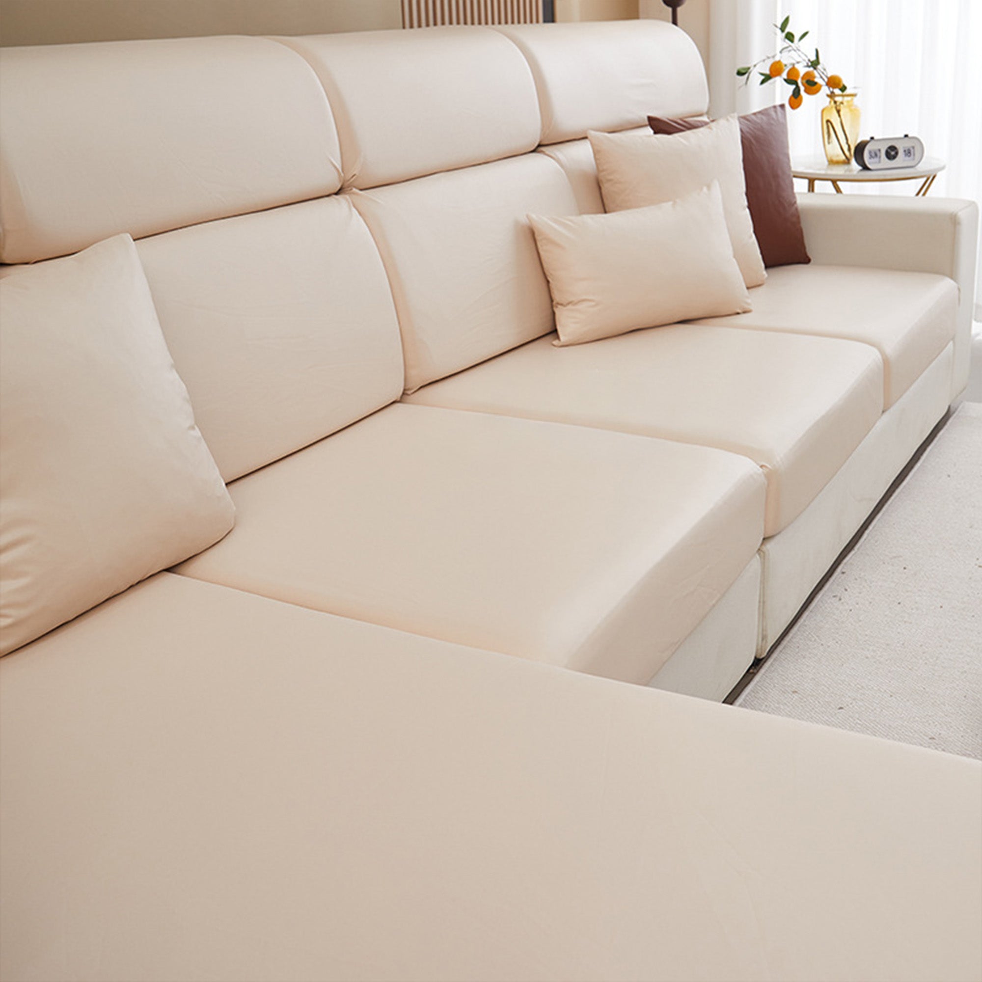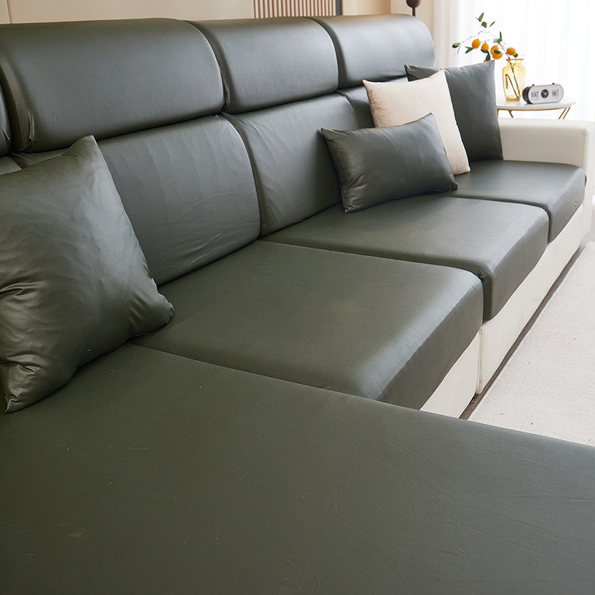 Protect your sofa in style with our WaterShield Tech-Fabric Stretch Cover. Engineered for busy, pet-friendly homes, this full-wrap slipcover pairs a sleek, modern look with waterproof performance and a stay-put fit—so sitting, lounging, or even jumping won’t budge it.