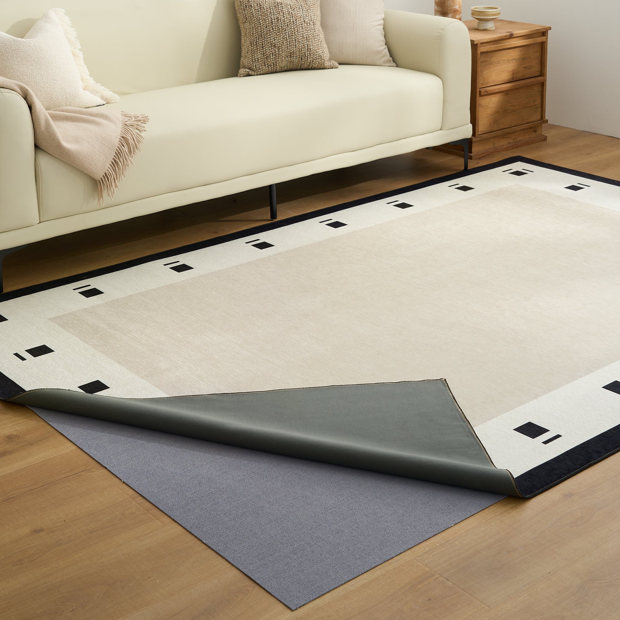 • Hassle-Free Settlement: Simply lay the pad down first, then align the rug cover to match its width for a perfect fit. Designed with a special bonding process, the rug and pad stay securely in place without shifting—no complicated installation required.