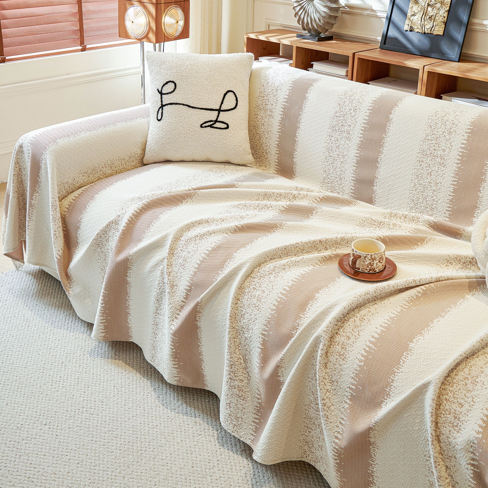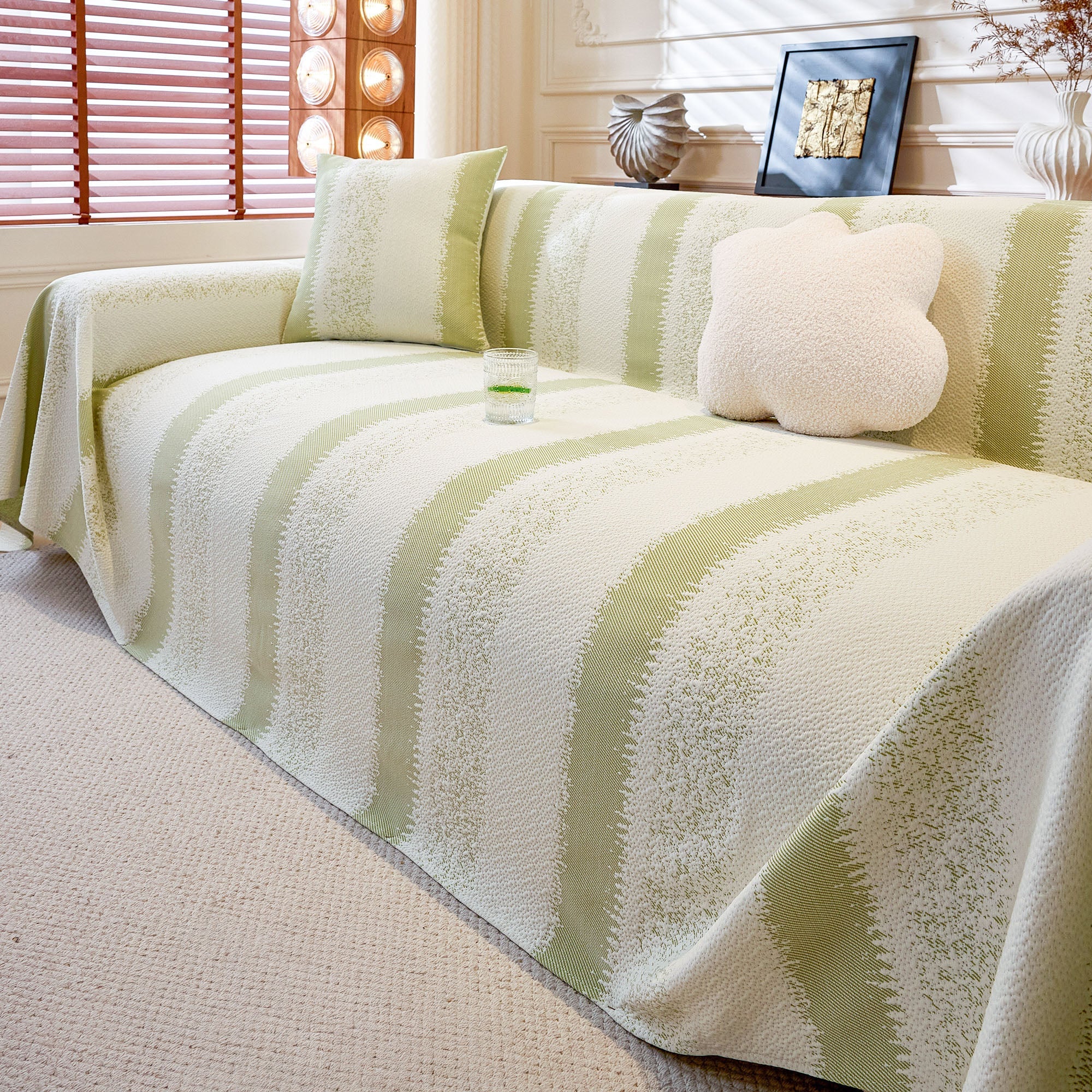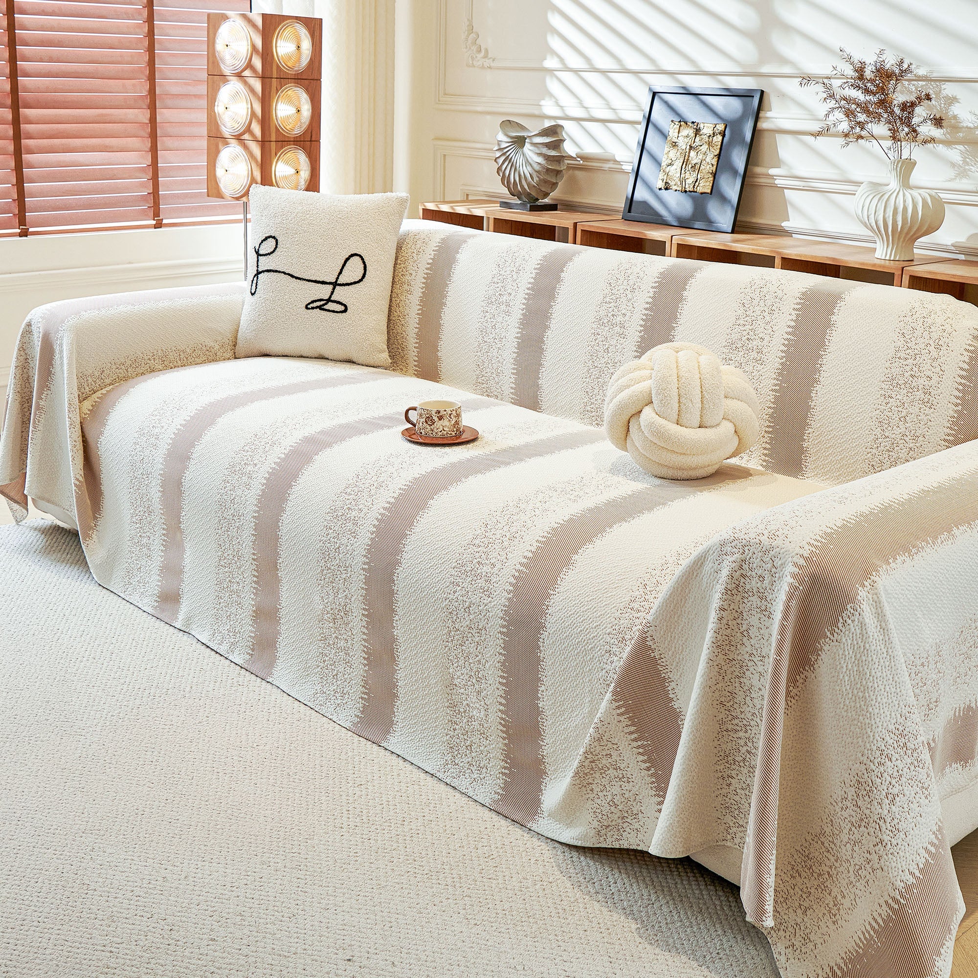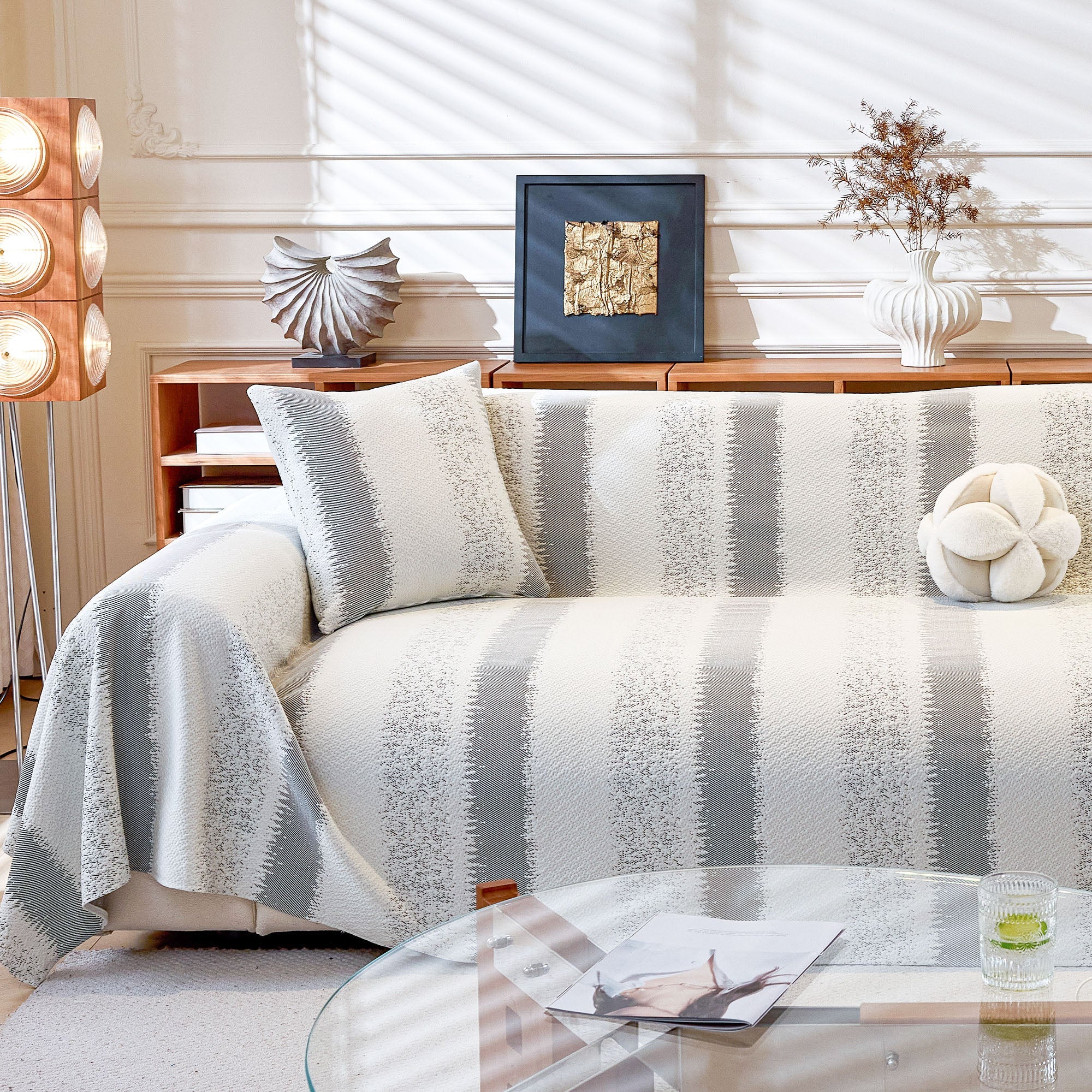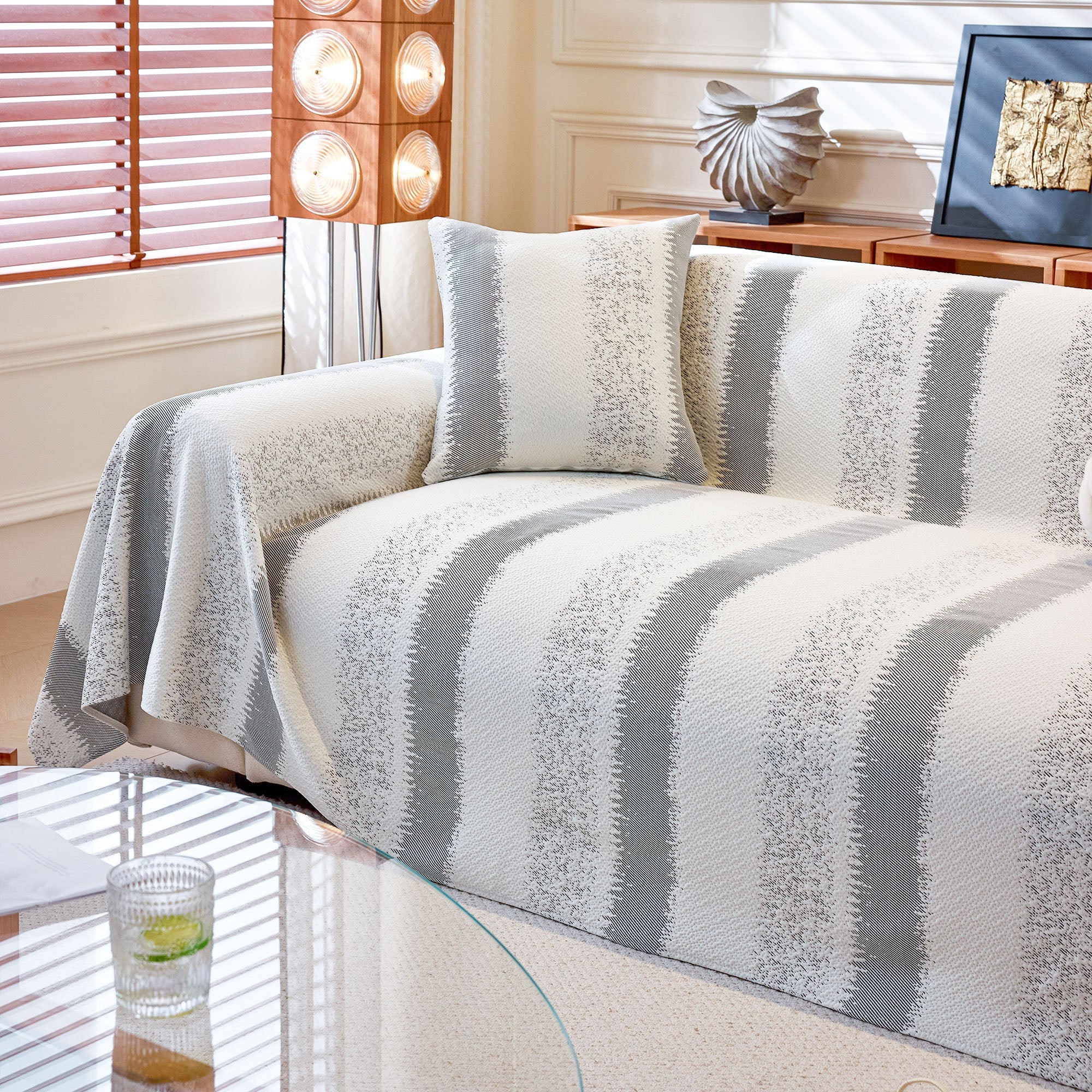 Striped Soft Plush Pet-Friendly Multi-Purpose Minimalist Vintage Sofa Cover