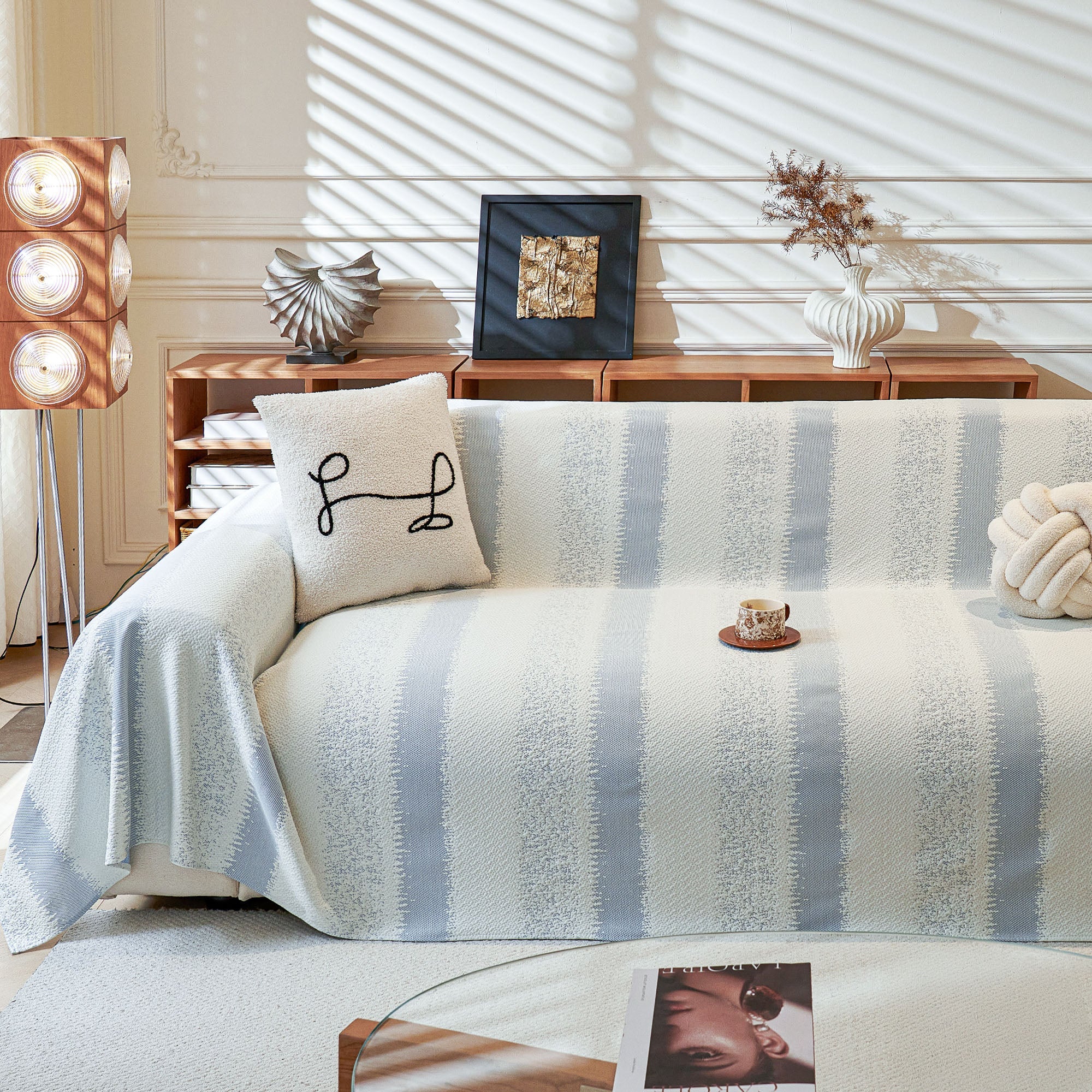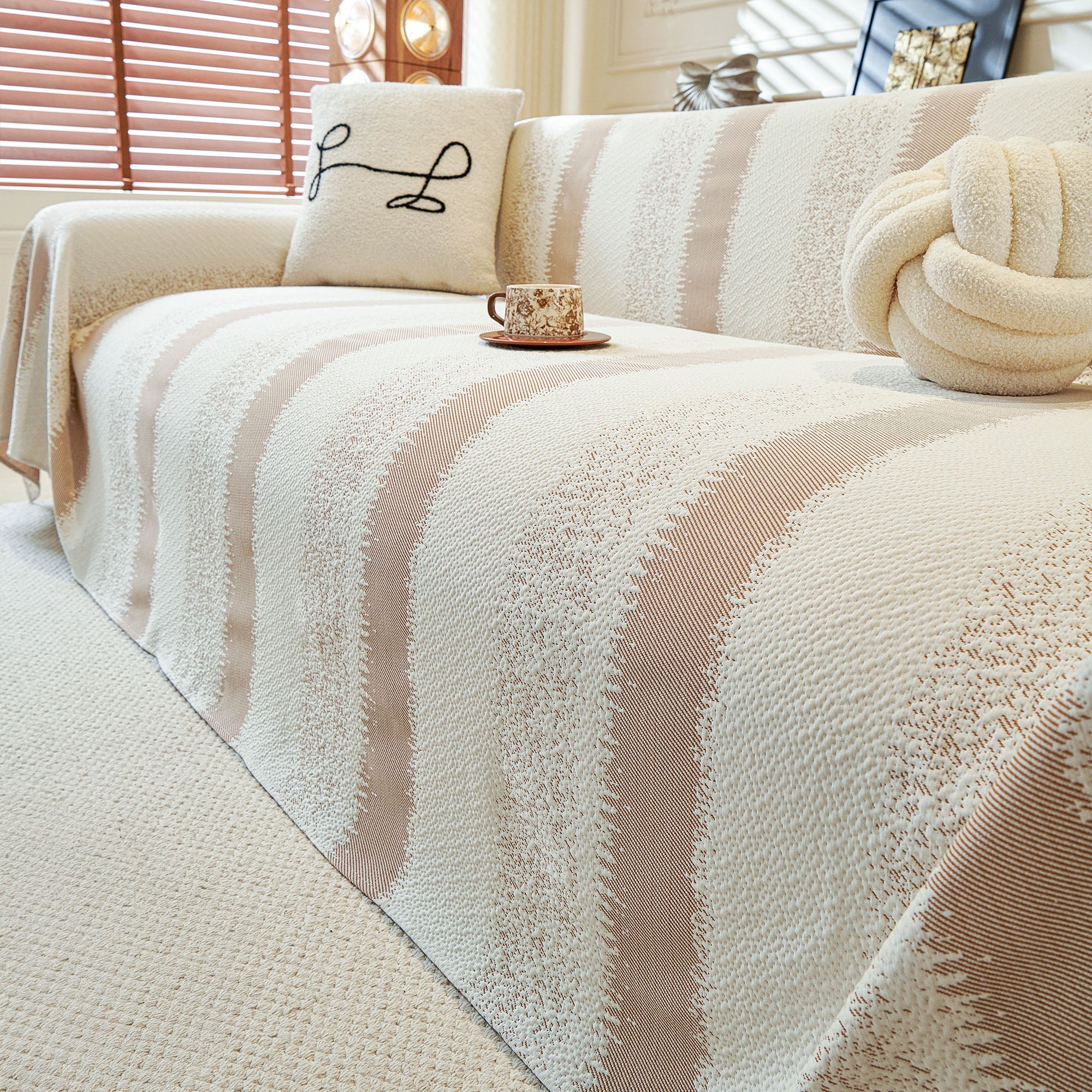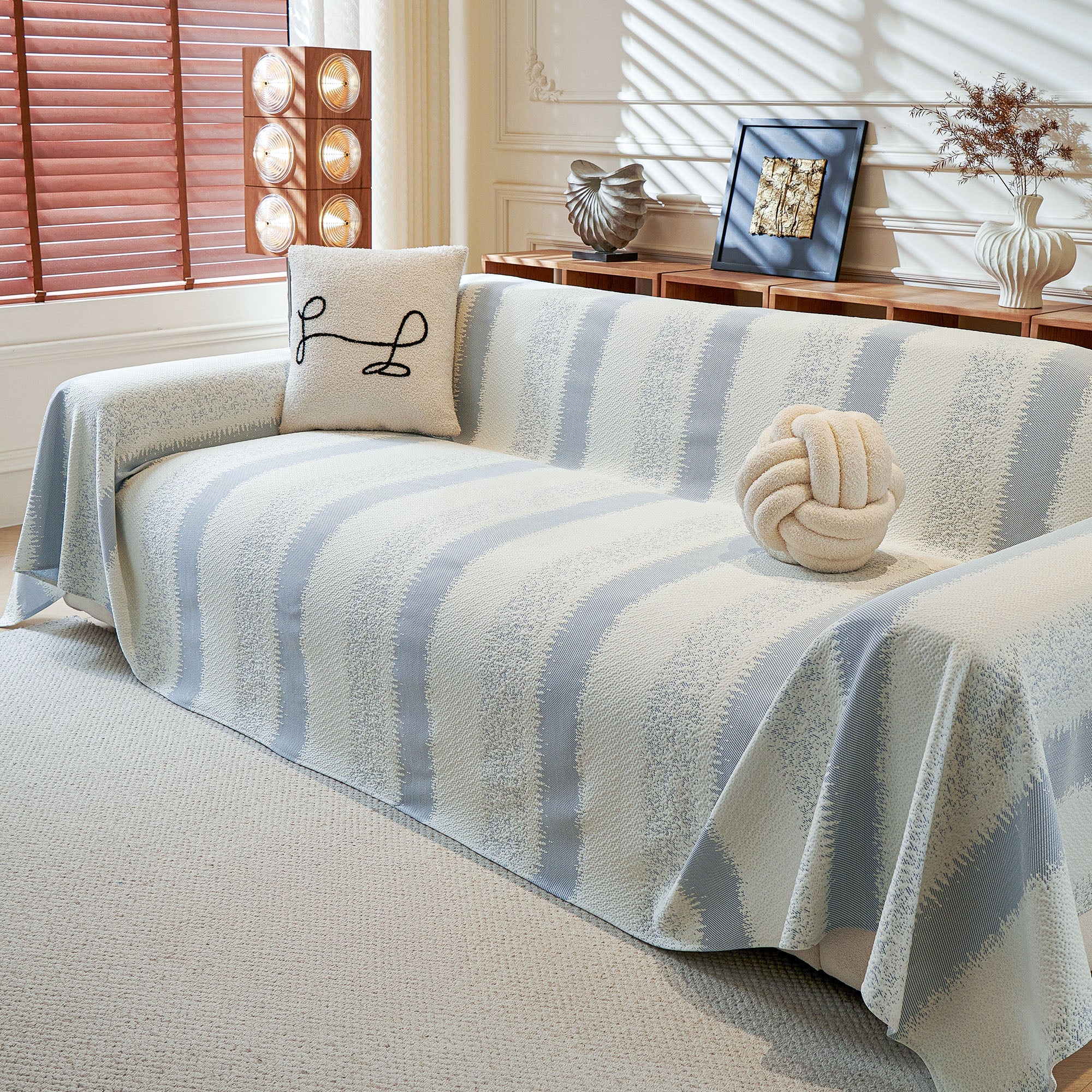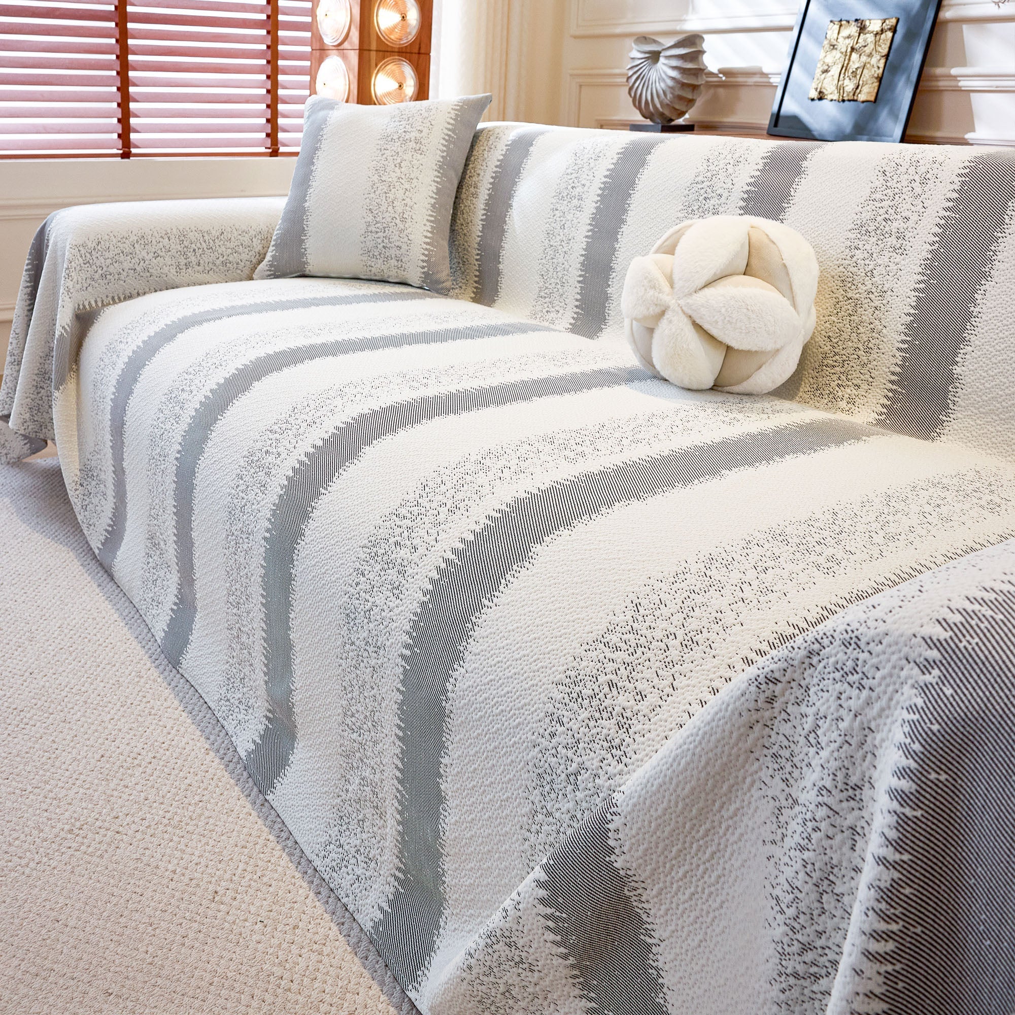 •The Serene Stripes Sofa Cover is made from textured knit fabric that feels gentle on paws while holding up to the demands of daily life.