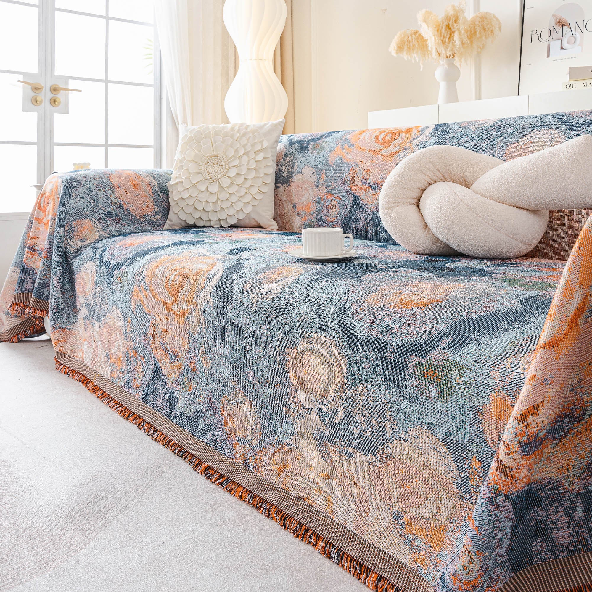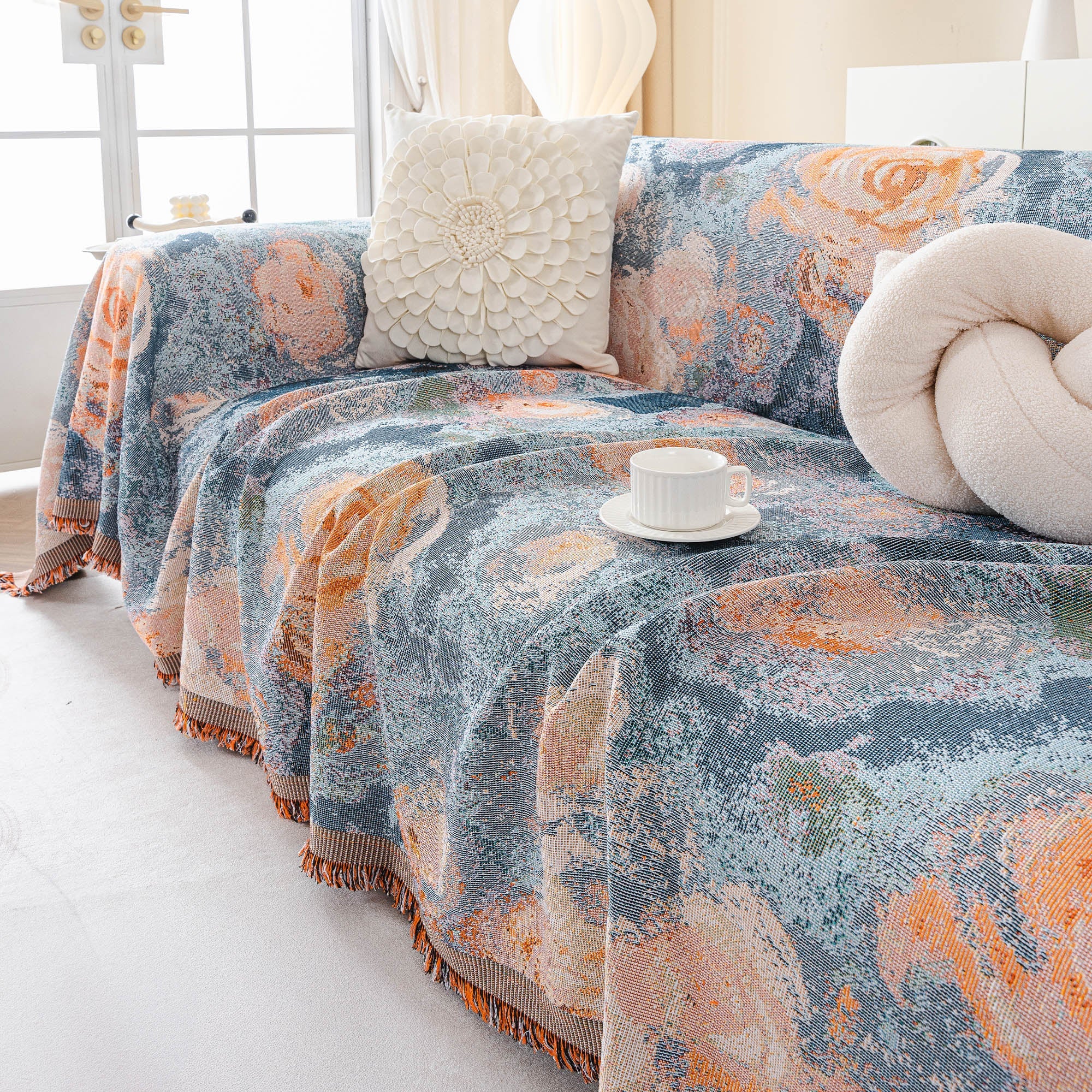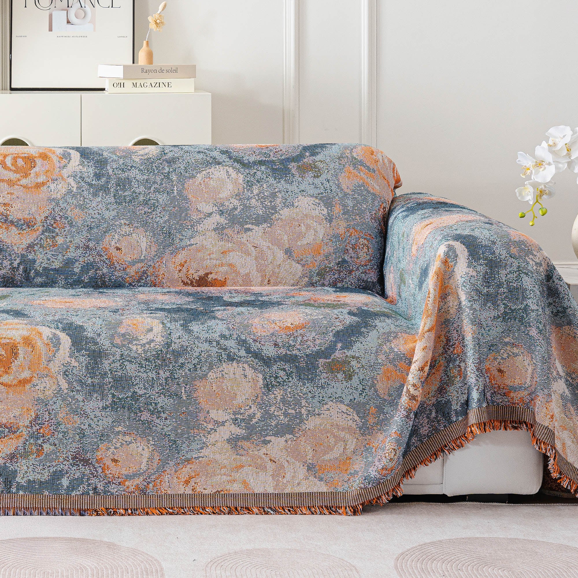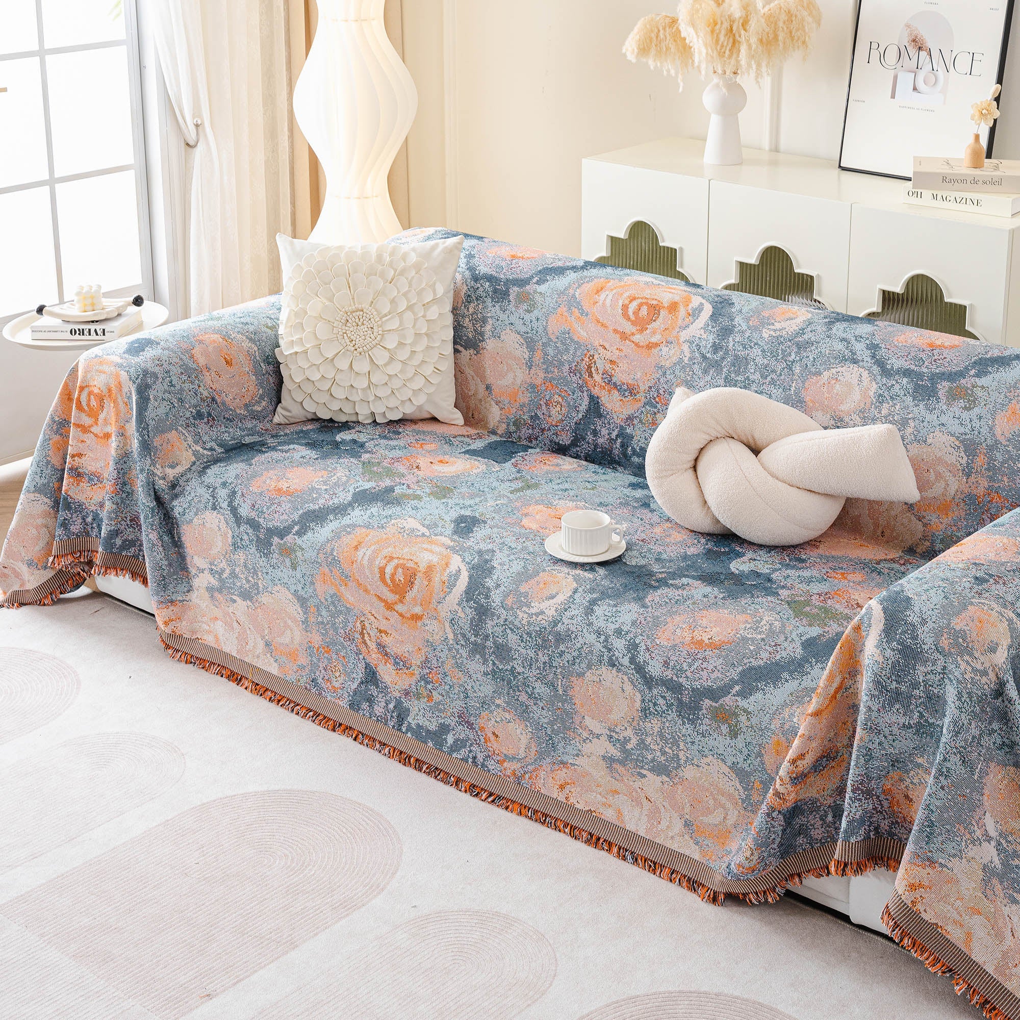 Unique Vintage Rosebush Floral Chenille Couch Cover Soft Stylish Breathable Sofa Protection for a Cozy Modern Easy-to-Clean Home